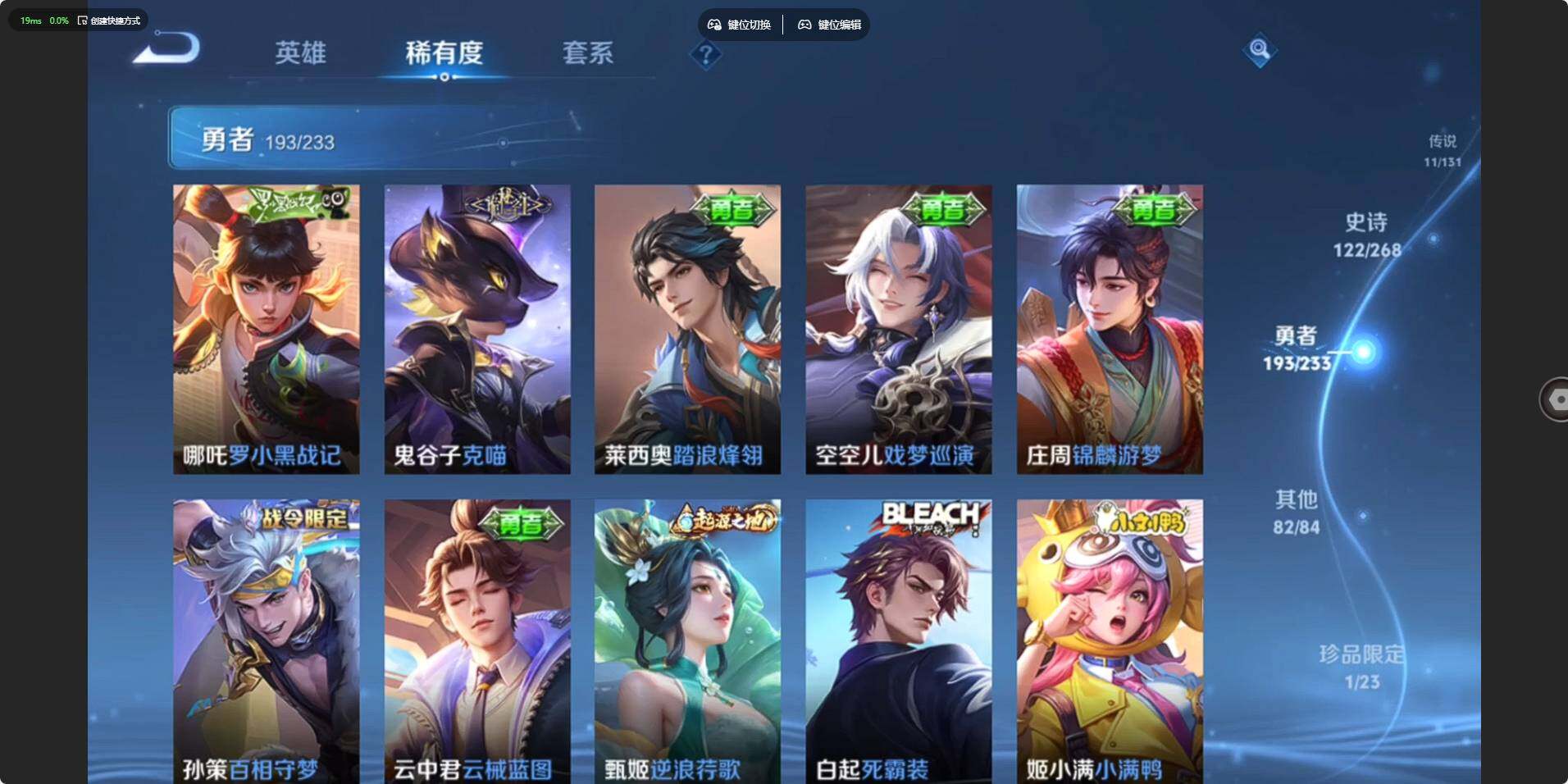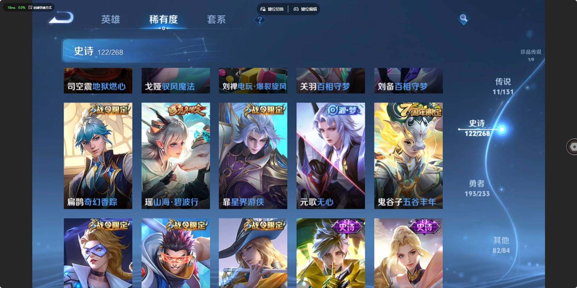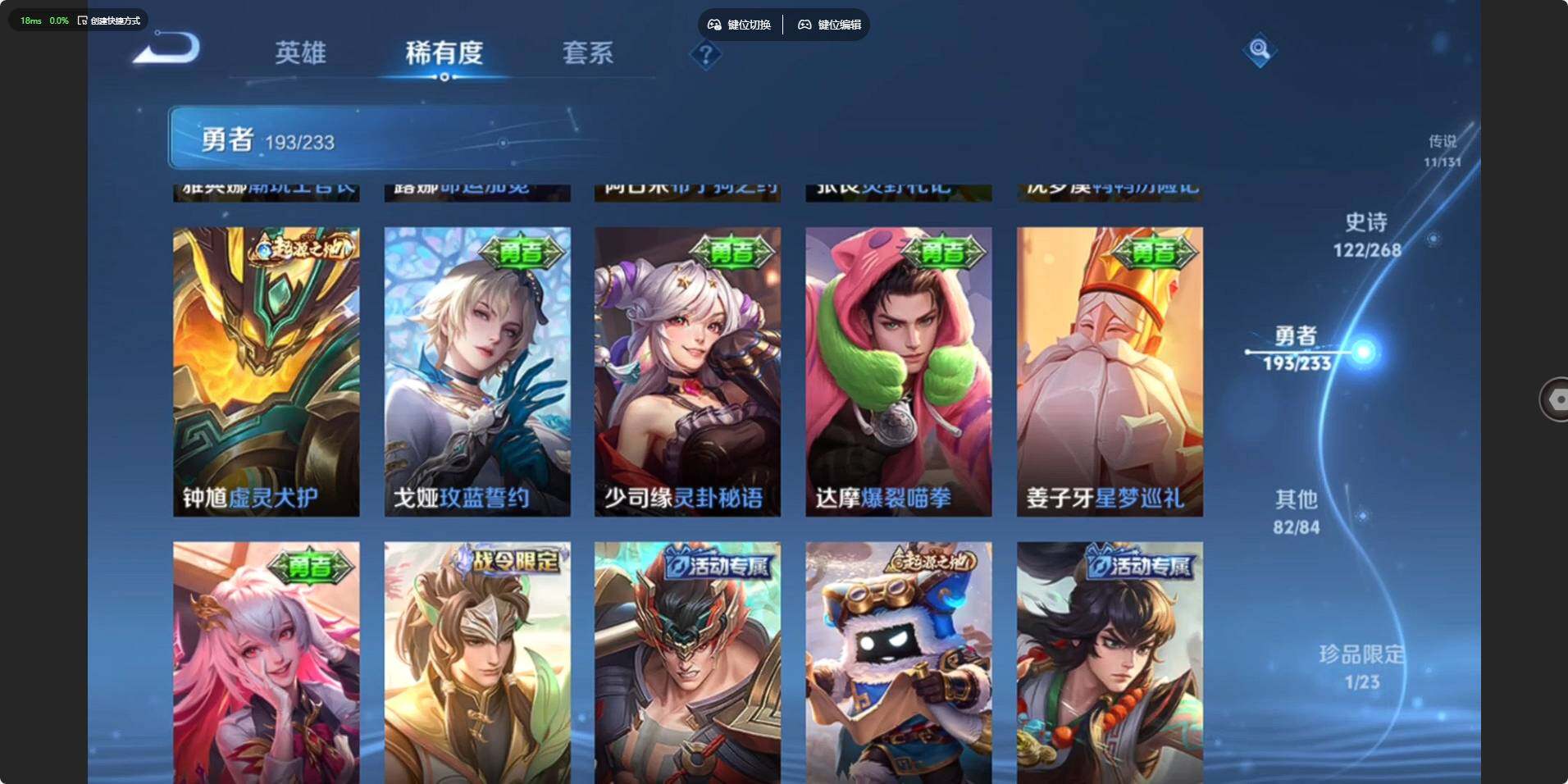 - [12946860]安卓Q-V7-至尊星耀II段位-124英雄-193皮肤-1典藏-7传说-46史诗 【英雄全皮】:空空儿全皮,影全皮 【荣耀典藏】:韩信弑枪猎影 【传说皮肤】:云缨幻光神枪,桑启鸣野蒿,孙策末日机甲,公孙离祈雪灵祝,铠绛天战甲,曜云鹰飞将,李信一念神魔 【限定皮肤】:大乔绒语心约,姜子牙天穹之誓,狄仁杰阴阳师,赵云皇家上将,阿轲迷踪丽影,元歌云间偶戏,马可波罗暗影游猎,狄仁杰魔术师,达摩沙漠行僧,项羽海滩派对,孙悟空至尊宝,李元芳银河之约,百里玄策原初追逐者,公孙离祈雪灵祝,沈梦溪大漠名商,裴擒虎擒涛扼浪,西施玲珑珍味,鲁班大师探海日志,桑启海盐诗旅,艾琳女武神,阿古朵江河有灵,张良古海寻踪,高渐离燃音魔法,妲己灵卜魔法,鬼谷子天穹祈灯,沈梦溪龙舞盛年,刘邦剑破天穹,程咬金群星魔术团,周瑜熔金海岸 【年限皮肤】:公孙离祈雪灵祝 【赛季限定】:达摩沙漠行僧,张良古海寻踪,百里玄策原初追逐者,沈梦溪大漠名商,裴擒虎擒涛扼浪,鲁班大师探海日志,桑启海盐诗旅,鬼谷子天穹祈灯,刘邦剑破天穹,姜子牙天穹之誓 【战令限定】:阿轲迷踪丽影,元歌云间偶戏,马可波罗暗影游猎,李元芳银河之约,西施玲珑珍味,高渐离燃音魔法,妲己灵卜魔法 【史诗皮肤】:露娜紫霞仙子,赵云皇家上将,赵云未来纪元,貂蝉圣诞恋歌,甄姬冰雪圆舞曲,王昭君偶像歌手,狄仁杰魔术师,廉颇地狱岩魂,宫本武藏鬼剑武藏,孙尚香水果甜心,嬴政摇滚巨星,妲己魅力维加斯,吕布圣诞狂欢,孙悟空至尊宝,花木兰水晶猎龙者,夏侯惇乘风破浪,兰陵王暗隐猎兽者,雅典娜冰冠公主,安琪拉心灵骇客,百里守约特工魅影,铠曙光守护者,李元芳逐浪之夏,阿轲节奏热浪,大乔猫狗日记,伽罗箭羽风息,狄仁杰鹰眼统帅,李元芳银河之约,小乔青蛇,阿轲迷踪丽影,马可波罗暗影游猎,百里玄策原初追逐者,元歌云间偶戏,沈梦溪月团寄思,阿古朵江河有灵,妲己灵卜魔法,高渐离燃音魔法,亚连破空之剑,百里守约百相守梦,牛魔星界战将,孙膑茶境仙,阿轲化蝶舞,刘禅鸭鸭历险记,狂铁龙之律动,周瑜百相守梦,黄忠百相守梦,西施织梦人,公孙离涂山容容 【其他皮肤】:项羽海滩派对,韩信教廷特使,阿轲爱心护理,赵云忍炎影,艾琳女武神,程咬金星际陆战队,白起白色死神,牛魔西部大镖客,孙膑天使之翼,妲己少女阿狸,典韦黄金武士,亚瑟死亡骑士,达摩拳王,花木兰兔女郎,张飞五福同心,甄姬花好人间,宫本武藏万象