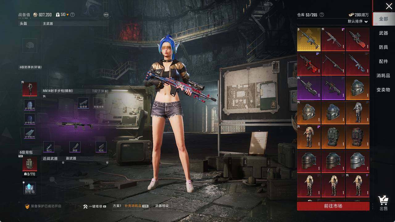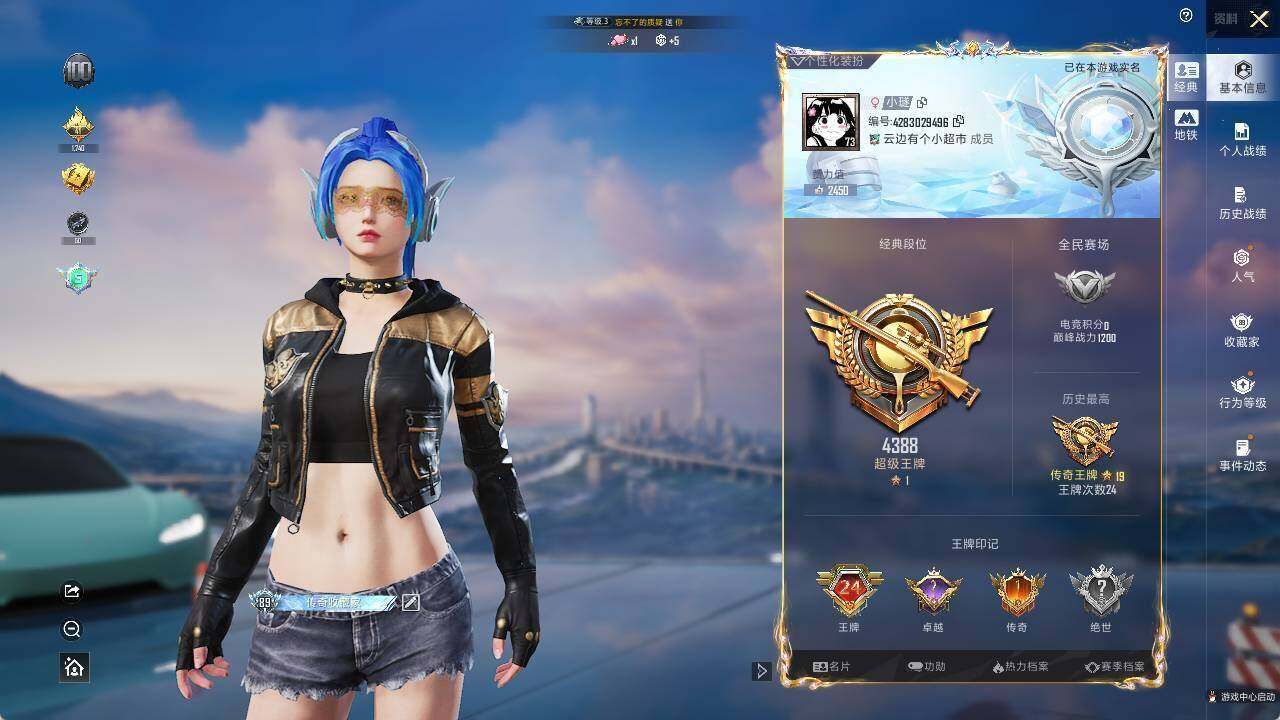 - [8430699]实名: 可修改 时装数: 300 载具数: 1 枪械数: 107 战备数: 81 热门装扮: 天使彩虹糖,炙焰红王,冰霜白皇,童趣迷兔,山涧鹿灵,恐龙拽拽,小可学妹,千金淑猫 载具: 萌喵橘座 稀有枪皮: AKM梦之光华,Kar98K-巳巳如意,MK14-樱桃泡泡