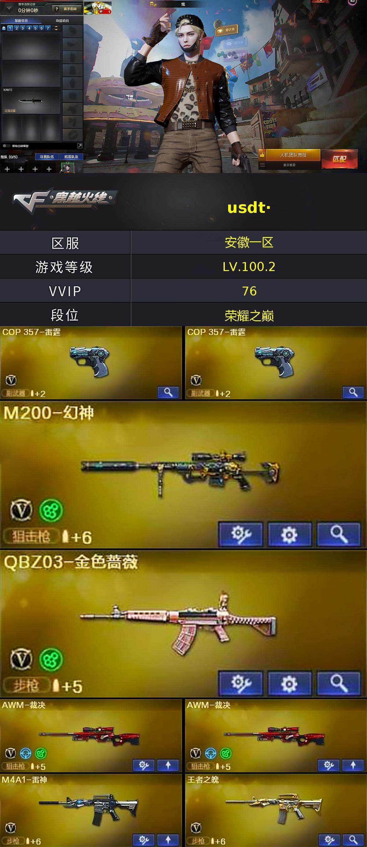 [15623971]安徽一区-75V-6王者-0炫金 【热门武器】:QBZ03-金色蔷薇,M200-幻神,死亡之眼,M4A1-黑骑士*3,沙鹰-修罗*2 【王者炫金武器】:超新星-悦享,炼狱-悦蓝 【音效卡】:M4A1-黑骑士音效卡 【皮肤】:裁决-胜者为王 皮肤,毁灭耀金皮肤,毁灭-英雄计划 皮肤,无影耀金皮肤,极光-能量核心*2,修罗-能量核心,修罗耀金皮肤 【角色】:炫,云海玲珑,飞虎队-X,风暴女,灵狐者-X,曼陀罗-礼服,潘多拉-X,潘多拉-甜心教官,新娜塔莎,樱-战斗天使,影武者-X,游珑儿 【人偶武器】:街机小灰机,迷你牛牛 【暴走生化】:死亡之眼,超级对讲机 【英雄级武器】:AK47-火麒麟,M4A1-雷神,M4A1-黑骑士*3,AK47-黑武士,M4A1-雷霆,黑武士-锦绣游龙,QBZ03-金色蔷薇,王者之翼-觉醒版,王者之武-觉醒版,王者之魄-觉醒版,黑骑士-海王,Barrett-毁灭*2,Barrett-极光*4,AWM-裁决*2,M200-幻神,王者之怒-觉醒版,AA-12-雷霆,沙鹰-修罗*2,沙鹰-天神*3,COP-雷霆*2,屠龙*3,麒麟刺-堕天神,龙啸-堕天神,高爆手雷-雷霆*11,高爆手雷-堕天神*2,闪光弹-雷霆*11,闪光弹-堕天神*2,烟雾弹-雷霆*11,烟雾弹-堕天神*2 【道具】:女皇终结者-魔龙之吻,绿色巨人,灵魂忍者,迷雾幽灵,夺命之镰,防化服*2,金色流光-枪王排位*2,星辰流光-枪王排位,巅峰赛先锋-金色流光,枪王排位28赛季金色流光,枪王排位29赛季金色流光,C4-黑曜,防弹头盔*3,防弹衣*4,C4工具钳*2,手雷包*4 【特殊枪械】:3黑骑士