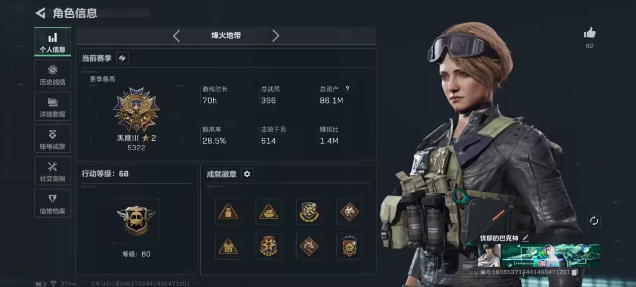 [15572578]可二次 【店主推荐捡漏号!可直接换绑】3077k哈伏币-80m流动资产-60烽火等级-黑鹰-13战场等级-列兵