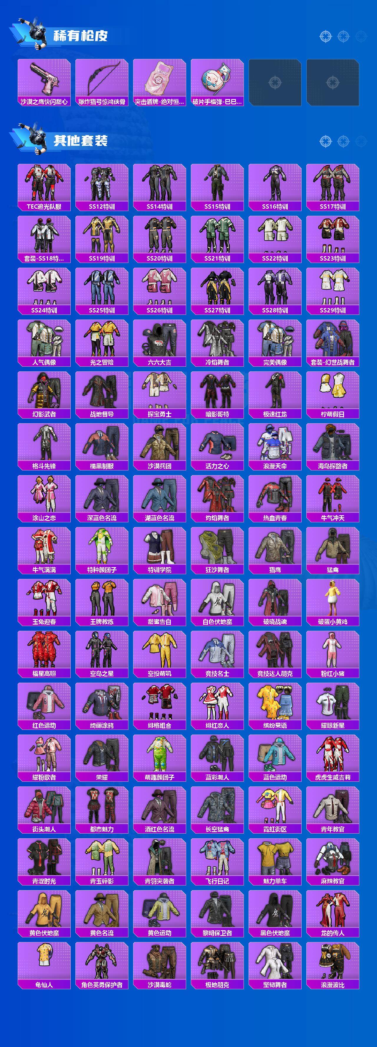 - [14617673]【店主推荐捡漏号!可直接换绑】 7309k哈伏币-45m流动资产-32烽火等级-青铜-1战场等级-无军衔 【干员外观】:骇爪-维什戴尔 【近战皮肤】:近战-黑鹰 【传说外观】:SCAR-H战斗步枪-启航,KC17突击步枪-电锯惊魂,R93狙击步枪-维什戴尔 【史诗外观】:腾龙突击步枪-猎鳄行动,MP5冲锋枪-战术竞备 【稀有外观】:M7战斗步枪-捣蛋鬼,SCAR-H战斗步枪-荣耀列队,MP5冲锋枪-弄臣,P90冲锋枪-捣蛋鬼,Vector冲锋枪-先锋,UZI冲锋枪-亚特兰蒂斯,SMG-45冲锋枪-幻影结构,QJB201轻机枪-哈夫克卫队,Mini-14射手步枪-荣耀列队 【普通外观】:M4A1突击步枪-粉色涂装,M4A1突击步枪-海色,QBZ95-1突击步枪-高雅黑,QBZ95-1突击步枪-海浪,K416突击步枪-高雅黑,M7战斗步枪-红色涂装,SG552突击步枪-海浪,UZI冲锋枪-海色,野牛冲锋枪-高雅黑,M250通用机枪-条纹,SR-25射手步枪-黄蜂,沙漠之鹰-高雅黑 【载具外观】:轮式突击炮-荣耀 【军牌】:军牌-静谧时光,军牌-展示,军牌-信誉优秀 【挂饰】:挂饰-维什戴尔,挂饰-阿萨拉狙击兵,挂饰-阿萨拉霰弹兵*2,挂饰-诡影狙击兵*2,挂饰-诡影喷火兵*4,挂饰-启程,挂饰-阿萨拉徽章*7