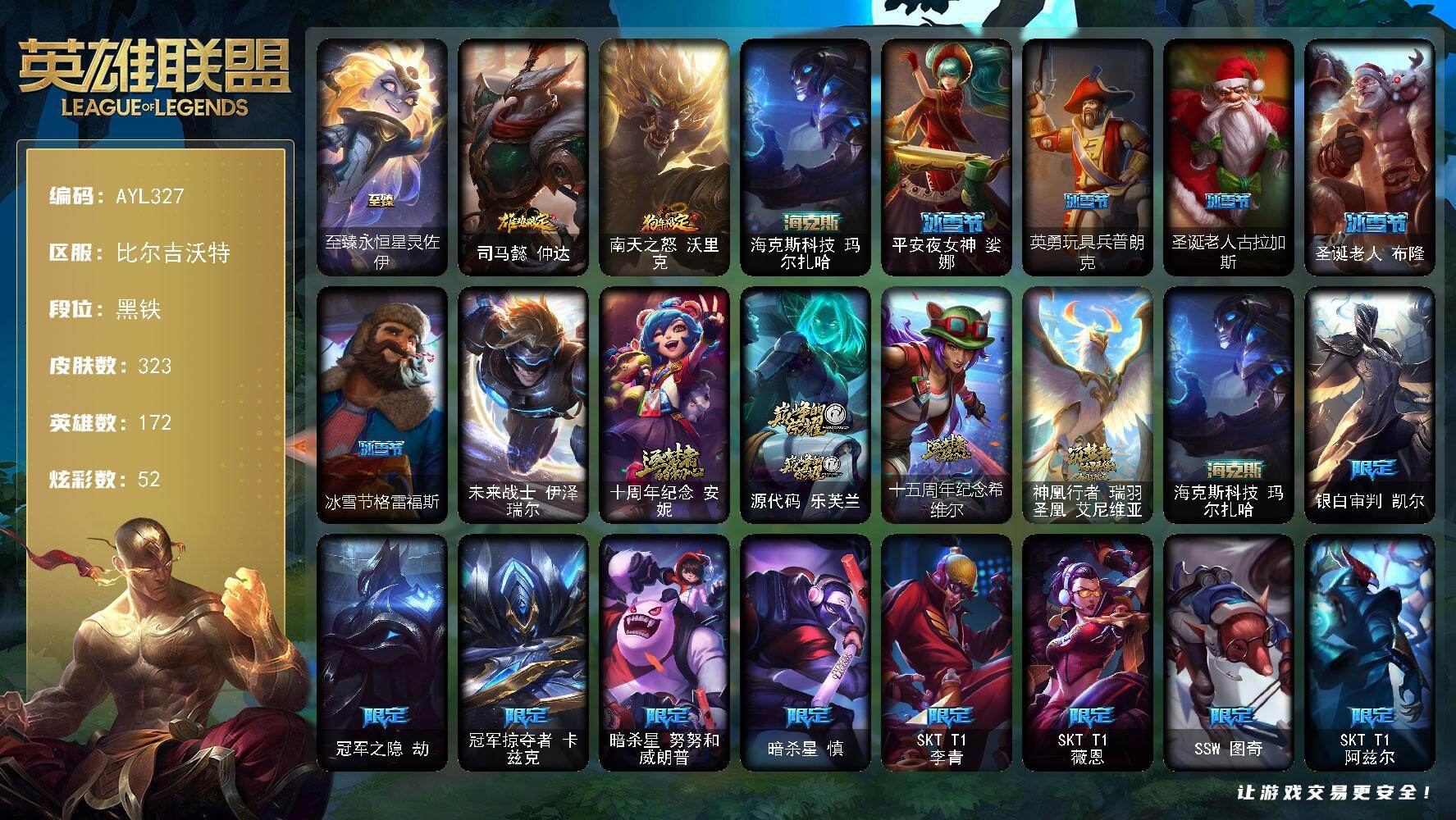 [15632063]【店主推荐捡漏号】黑铁段位-172英雄-323皮肤-52炫彩-1终极-6神话-34限定-36传说-94史诗