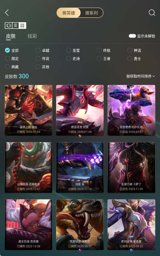 [15632138]未定级段位-172英雄-298皮肤-128炫彩-3终极-6神话-38限定-45传说-80史诗
