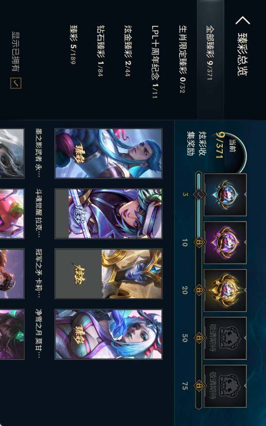 【臻彩皮肤】:无畏骑士瑟庄妮赤子初心,冠军掠夺者卡兹克凯旋圣装,冠军之矛卡莉丝塔凯旋圣装,斗魂觉醒拉克丝无限斗志,可爱可爱粉红红布里茨,魔女阿卡丽虚荣,净雪之月莫甘娜冬虹,墨之影武者永恩灵墨刻影