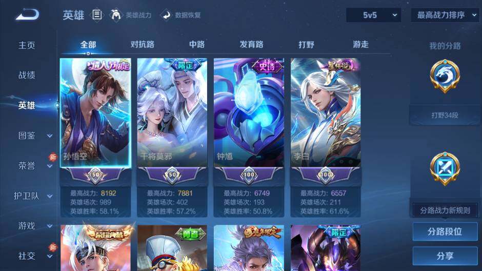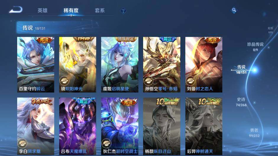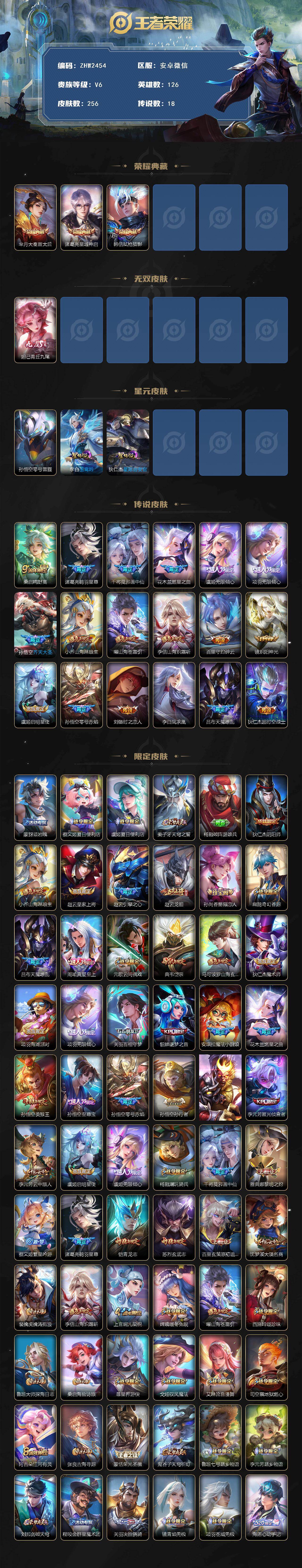[15634930]安卓WX-V6-最强王者段位-126英雄-256皮肤-3典藏皮肤-1无双-18传说-74史诗-3星传