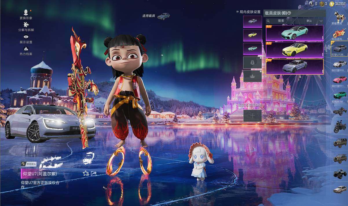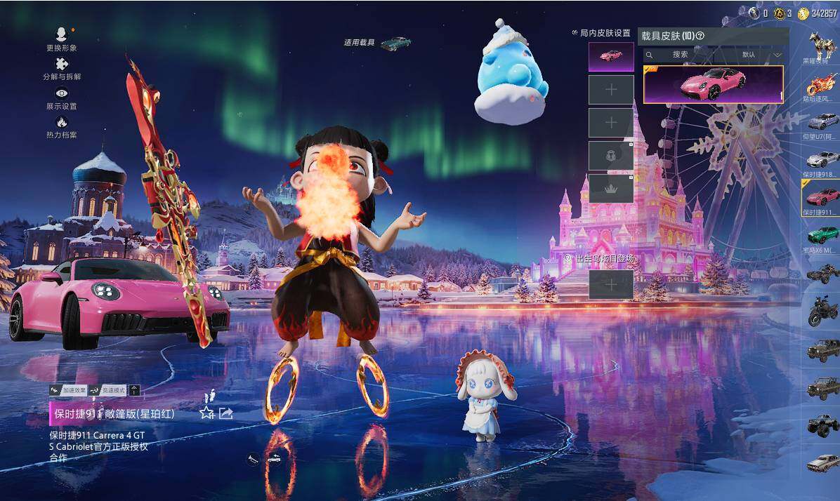 【粉色载具】:仰望U7(阿盖尔紫),宝马i8(离子银),宝马M4(圣保罗黄),宝马X6 M(曼岛绿),保时捷911 敞篷版(星珀红),保时捷Panamera(梦幻青),保时捷918 Spyder(液态银),踏焰逐风摩托车,僚机-冰龙团团,黑曜夜骑,冰绡玉鳞