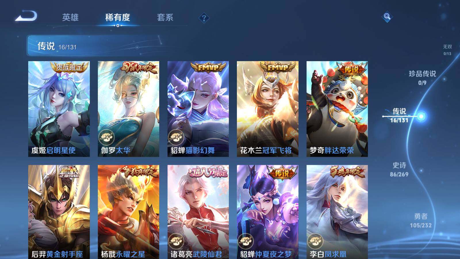 [15636308]安卓Q-V10-永恒钻石III段位-115英雄-291皮肤-3典藏皮肤-1典藏英雄-16传说-86史诗