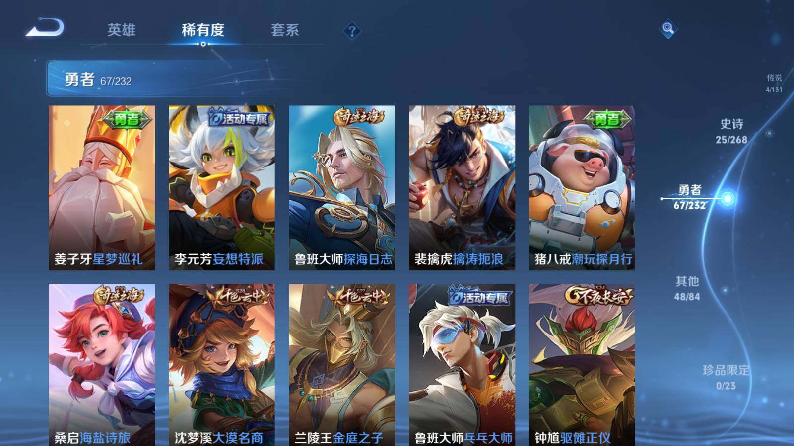 虞姬凯尔特女王,白起狰,太乙真人饕餮,曹操烛龙,芈月重明,典韦穷奇,狂铁御狮,米莱狄御霄,牛魔御旌,盾山御銮,夏侯惇朔风刀,明世隐疑决卦,老夫子醍醐杖,鬼谷子原初探秘者,狄仁杰万华元夜,程咬金演武夺筹,钟馗驱傩正仪,吕布猎兽之王,嬴政白昼王子,沈梦溪星空之诺,李元芳银河之约,弈星混沌棋,兰陵王金庭之子,沈梦溪大漠名商,桑启海盐诗旅,裴擒虎擒涛扼浪,鲁班大师探海日志