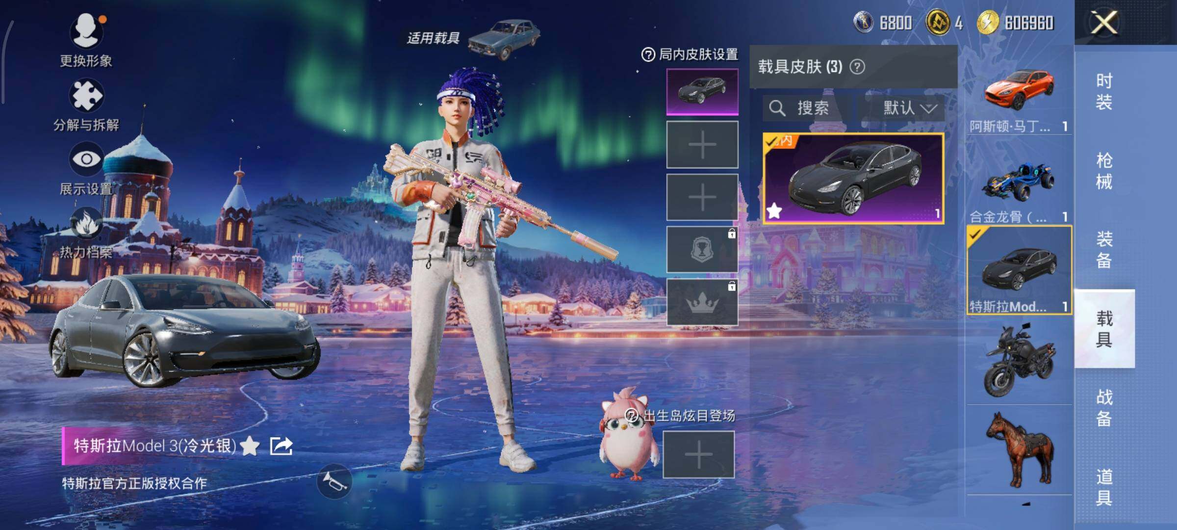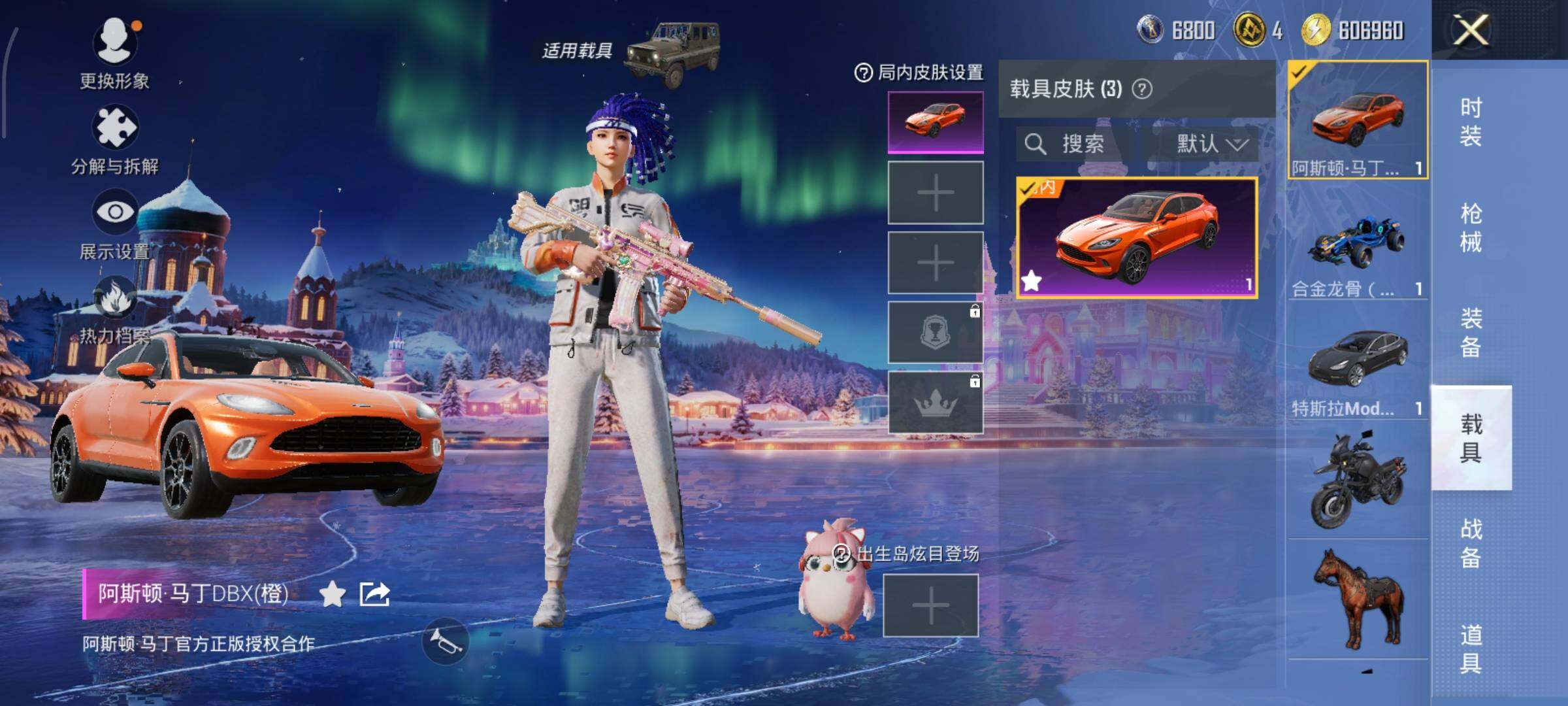 【粉色载具】:特斯拉Model 3(冷光银),阿斯顿马丁DBX(橙),合金龙骨(蓝)