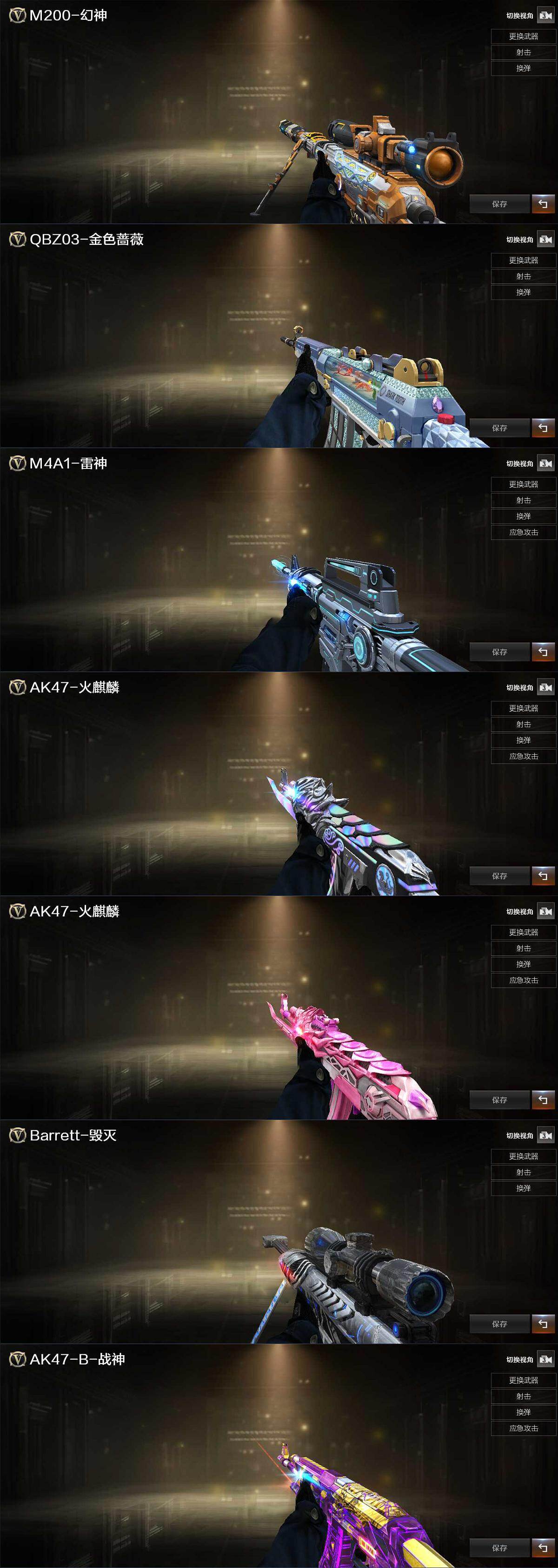 【热门武器】:QBZ03-金色蔷薇,M200-幻神,死亡之眼,加特林-炼狱,沙鹰-修罗