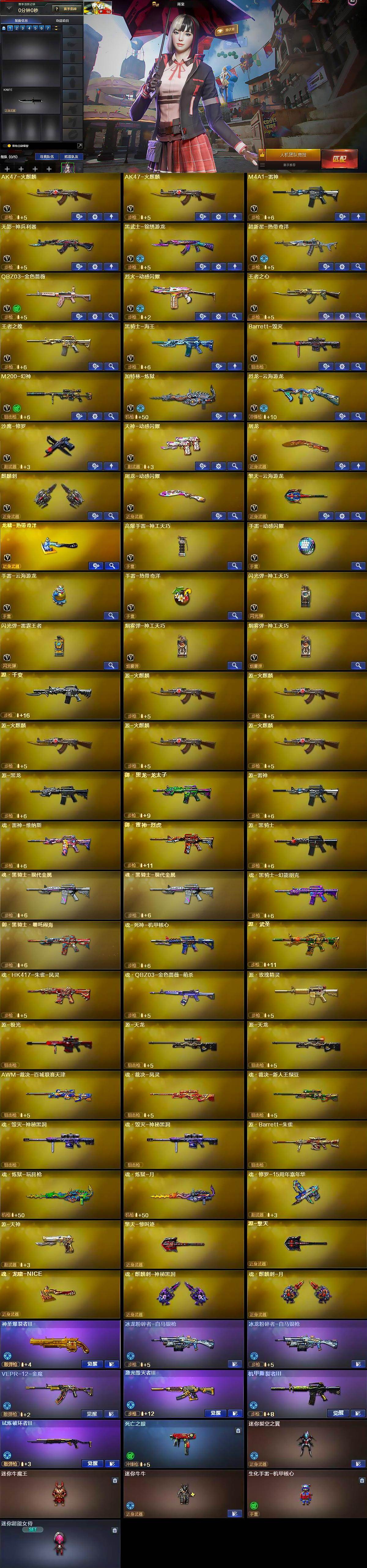 - [11295938]2粉装 3特效枪 21印记 可二次 可修改实名 女号 优质装备:缤纷油彩(猪妹猪脸妹),洛天依,SCAR-L纯梦嫁纱,七级SCAR-L-纯梦嫁纱,Kar98K-巳巳如意 热门装扮:兔兔白日梦,激萌罗小黑,潮萌小黄鸭 稀有枪皮:DP-28-豹影疾电 五级特效枪:五级Kar98K-巳巳如意 二级特效枪:二级DP-28-豹影疾电 紫色装扮:田园牧歌,轻风白浪,和煦暖阳,SS22特训,飞狐塔尔斯,SS23特训,幻彩翩翩,灵蜜圈圈,妙红点点,娇憨猪猪,萌趣咩咩,暖心熊熊,SS21特训,SS31特训套装,人气偶像,军械专家,冷焰舞者,SS30特训套装,SS33特训套装,青涩时光,SS20特训,青春冒险家,潮流游乐家,SS15特训,时空追击者,暴风机械师,SS16特训,银白舞王,SS13特训,治愈之星,科技之星,SS14特训,怪笑疯兔,萌趣颜团子,特种颜团子,SS19特训,吉莉礼服,天籁歌者,瑞龙福将,团圆交子,SS17特训,炫光向阳,异彩先驱,SS18特训,都市魅力,酒红色名流,野性战心,金鼠迎春,长空猛禽,霓虹极客,霓虹街区,青年教官,缤纷果语,耀眼新星,荣耀,蓝彩潮人,蓝色运动,虎虎生威吉莉,街头潮人,飞行日记,龙腾端午,魅力单车,鹤鸣,麻辣教官,黄色伏地魔,黄色名流,黄色运动,黑色伏地魔,龙的传人,龟仙人,冰河战士,龙魂突击队,蝶变,香桃花海,极速红龙,柠萌假日,格斗先锋,橘黑制服,深蓝色名流,滨海假日,幻影武者,夏日音浪,夜莺强袭者,完美偶像,帅气教官,幻世战舞者,怒火燎原,恋恋初桃,战地督导,湖蓝色名流,滨海厨神,绮丽涂鸦,白熊同盟,白色伏地魔,破晓战魂,破蛋小黄鸡,甜蜜告白,福星高照,空岛之星,空投萌叽,竞技达人朋克,红色运动,甜蜜熊情侣,王牌教练,牛气冲天,灰色格斗者,灼焰舞者,炫蓝之夏,牛气满满,猛禽,特殊使命,特训学院,猎鹰,镭射皇者,粉日山川,SS29特训,星途旅人,纯真浪花,热情海星,SS28特训,卖崽青蛙,听雨铃兰,玉兔迎春,巳巳如意,青团波波,糖糖葫芦,棉花软糖,竞技名士,街头风暴,惊鸿侠骨,甜梦熊熊,神气柴柴,懵萌河马,SS24特训(SS24特训套装),绚紫流光,SS25特训,锦衣飞扬,粉红小猪,SS27特训,无暇誓言,明鸳圣池,牛仔情诗,浪漫天命,SS26特训,春光漫游,快闪甜心,萌主吾皇,SS7特训,深蓝冒险家,迷域探索者,SS8特训,大橘大利