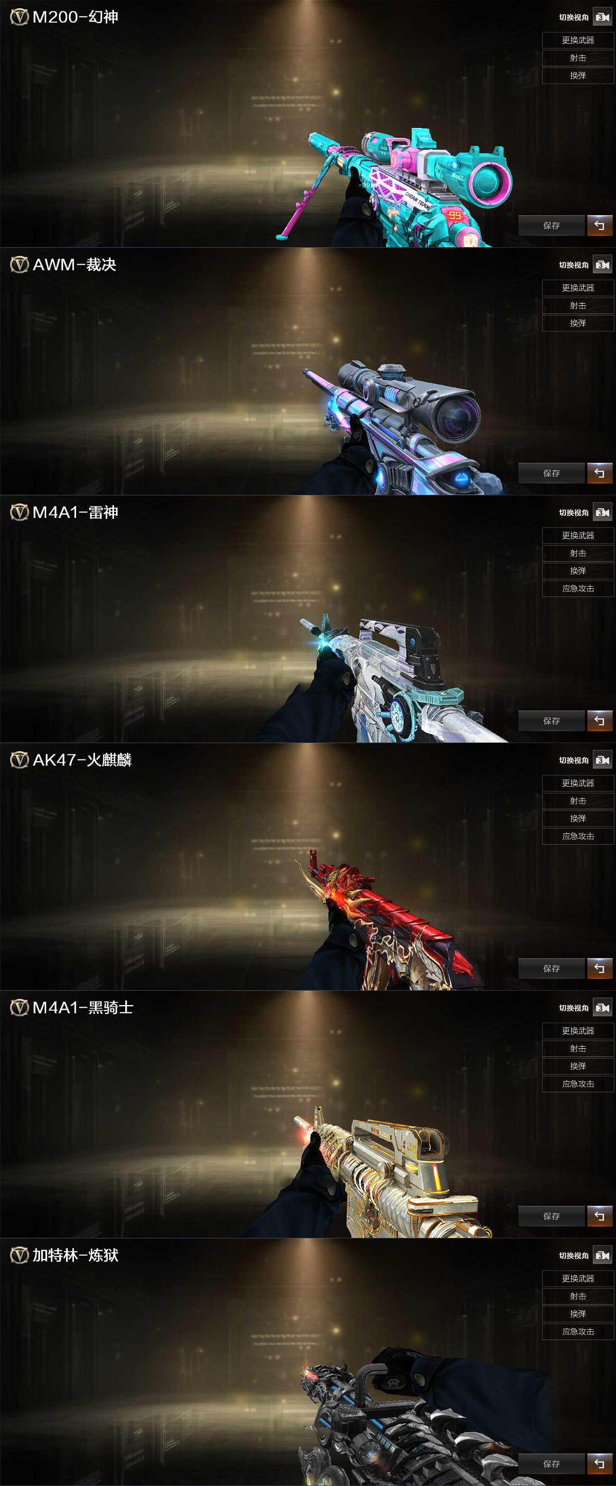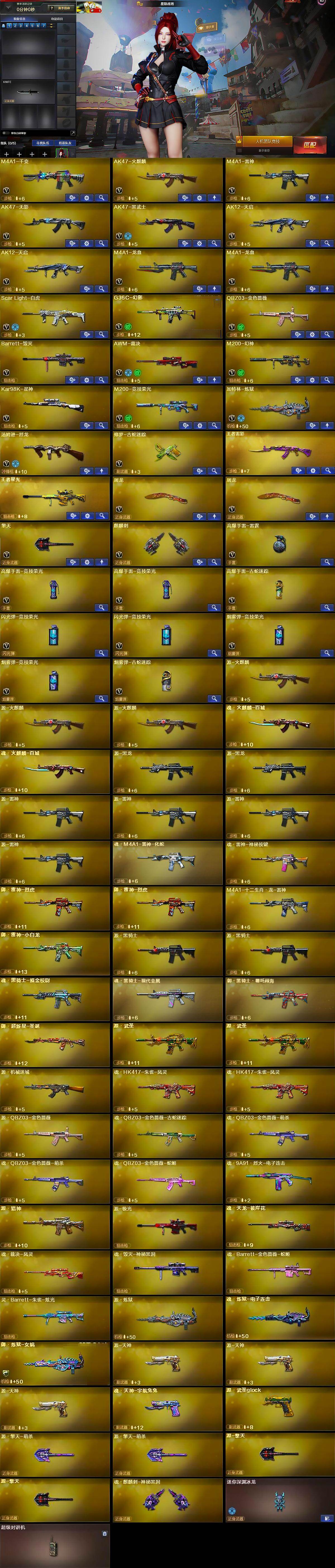【热门武器】:G36C-幻影,QBZ03-金色蔷薇,Scar Light-白虎,M200-幻神,修罗-古蛇迷踪,M200-竞技荣光,Kar98K-星神,汤姆逊-烈龙,加特林-炼狱