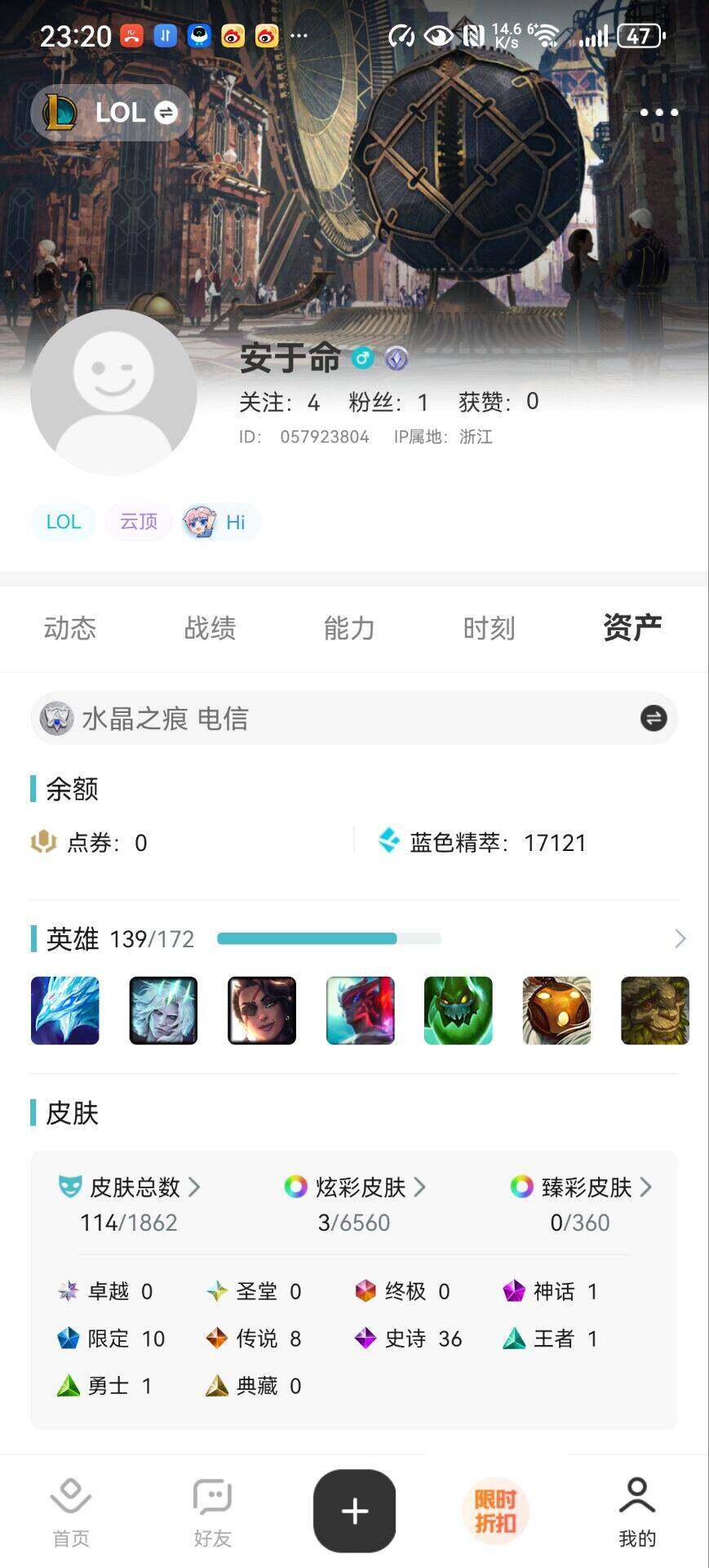 [15643614]【特价出售/店主推荐】未定级段位-139英雄-114皮肤-3炫彩-0终极-1神话-10限定-8传说-36史诗