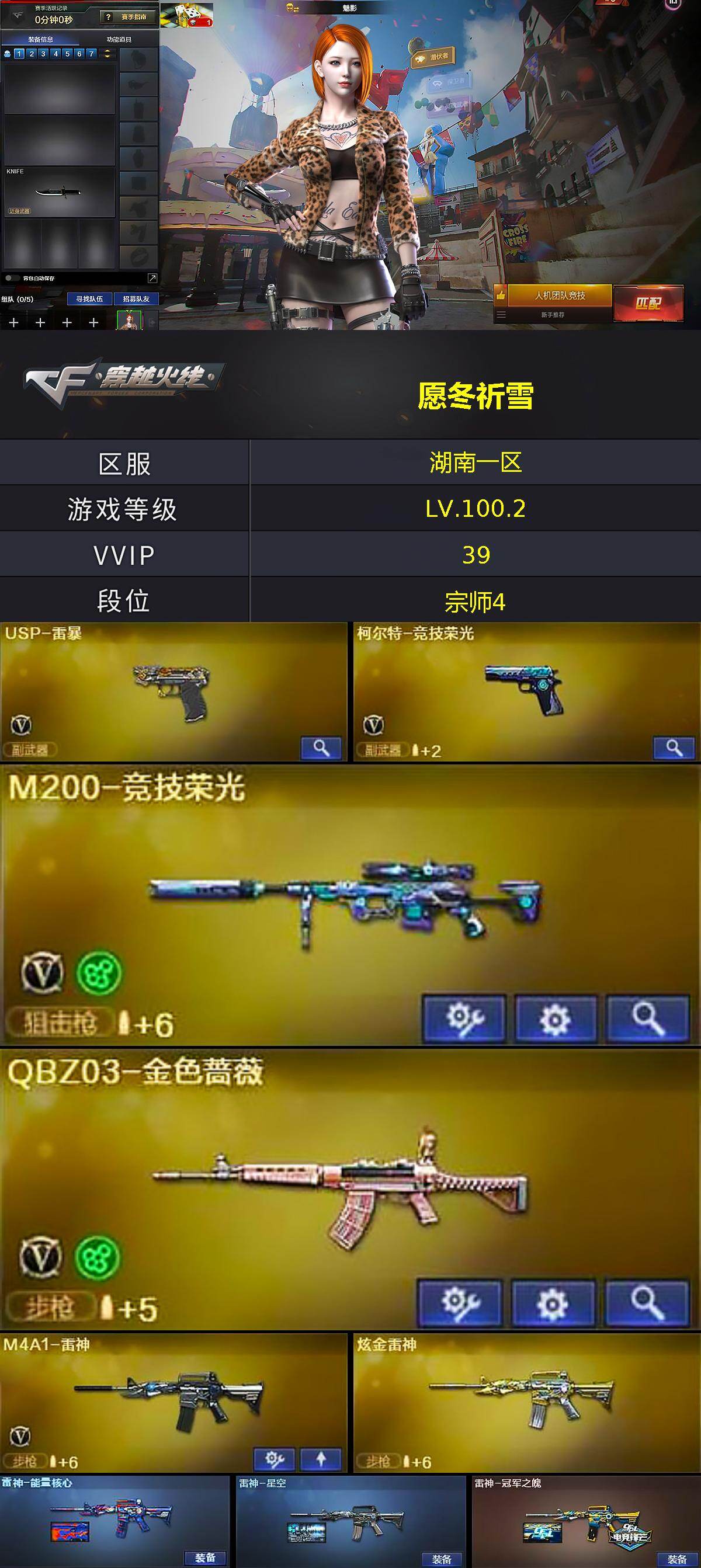 - [11498265]可二次 可修改实名 排位资格:有 1传说武器 1王者武器 25V武器 1V角色 3皮肤 可排位 宗师 武器:高爆手雷-玄豹,机械迷城-穹宇,屠龙,闪光弹-竞技荣光,轻型军用手斧-再燃火线,烟雾弹-玄豹,高爆手雷-竞技荣光,M4A1-黑骑士,闪光弹-玄豹,高爆手雷-雷霆王者,M200-幻神,烟雾弹-竞技荣光,烟雾弹-雷霆王者-觉醒版,沙鹰-修罗,传说暗裔