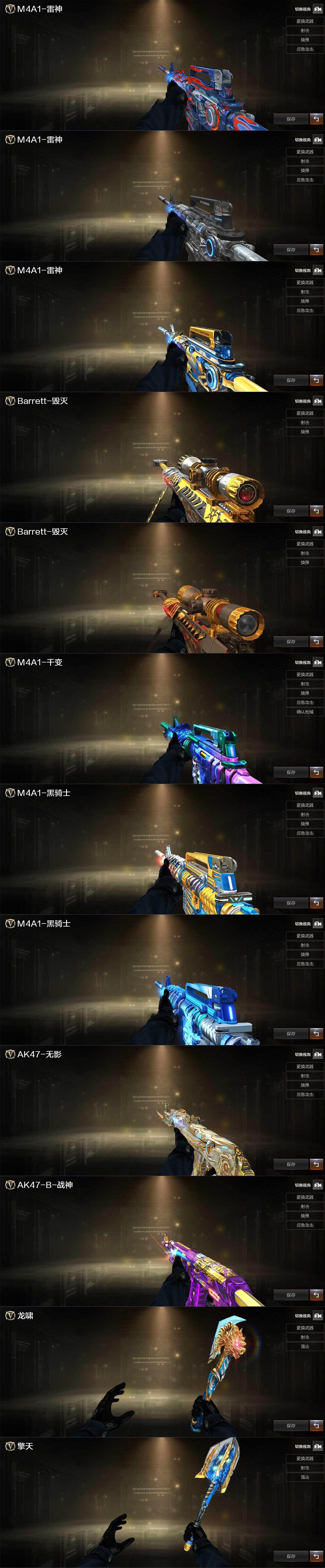【热门武器】:QBZ03-金色蔷薇,M4A1-青龙,M200-竞技荣光,死亡之眼,M4A1-黑骑士,USP-雷暴