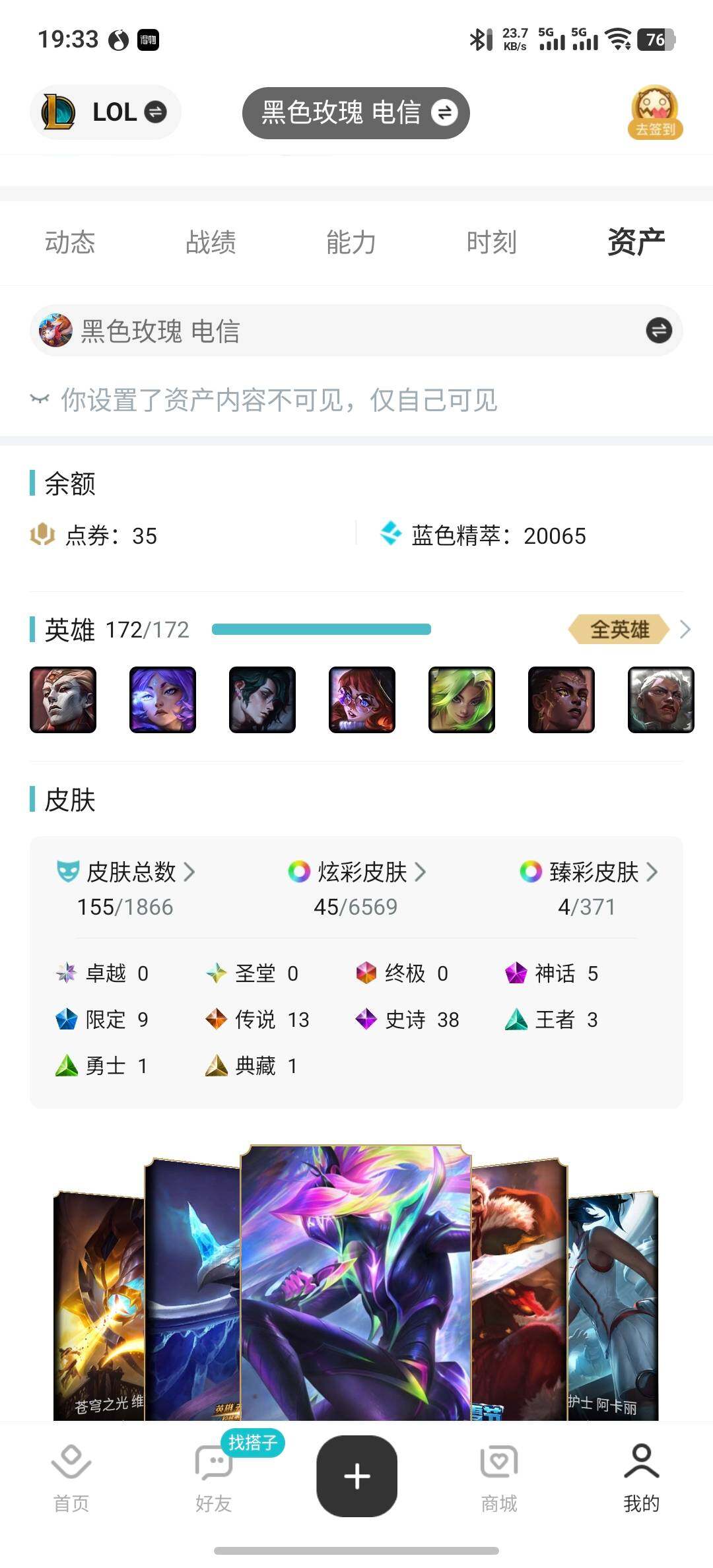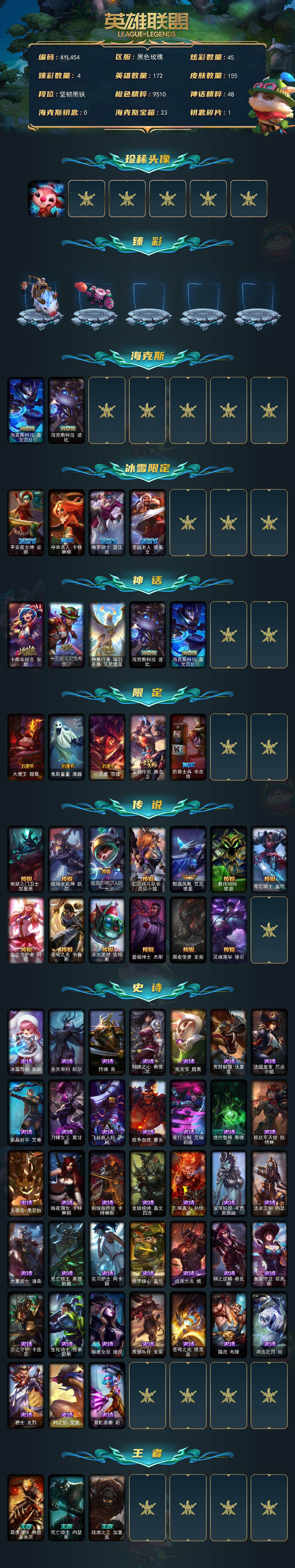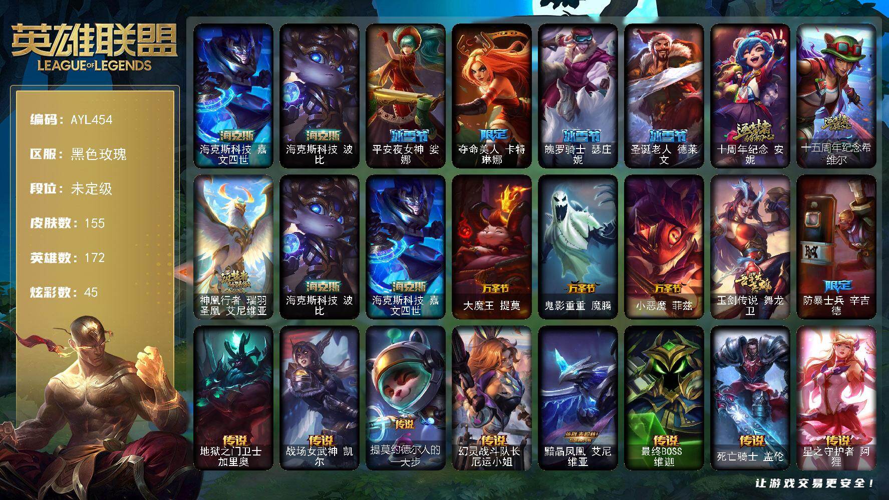 [15646674]【特价出售/店主推荐】未定级段位-172英雄-155皮肤-45炫彩-0终极-5神话-9限定-13传说-38史诗