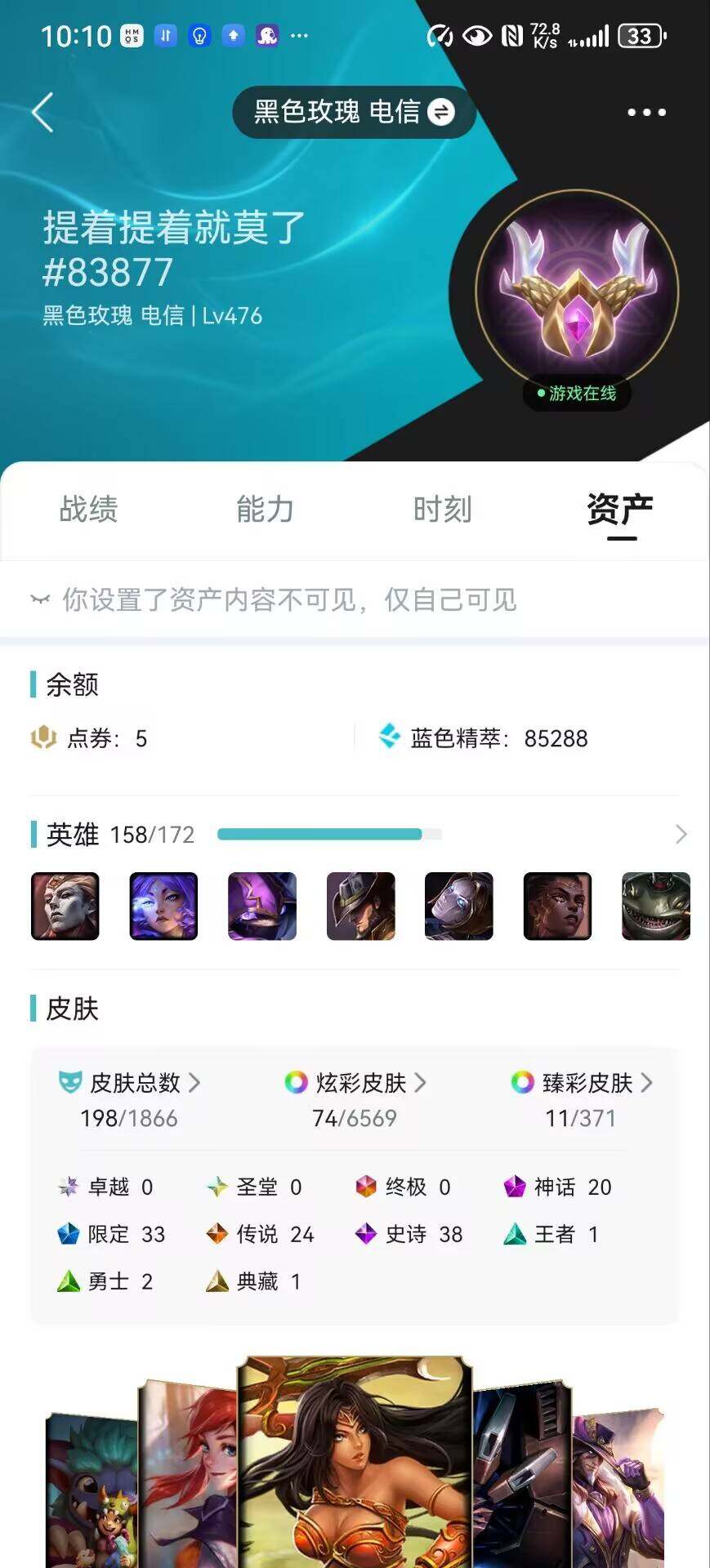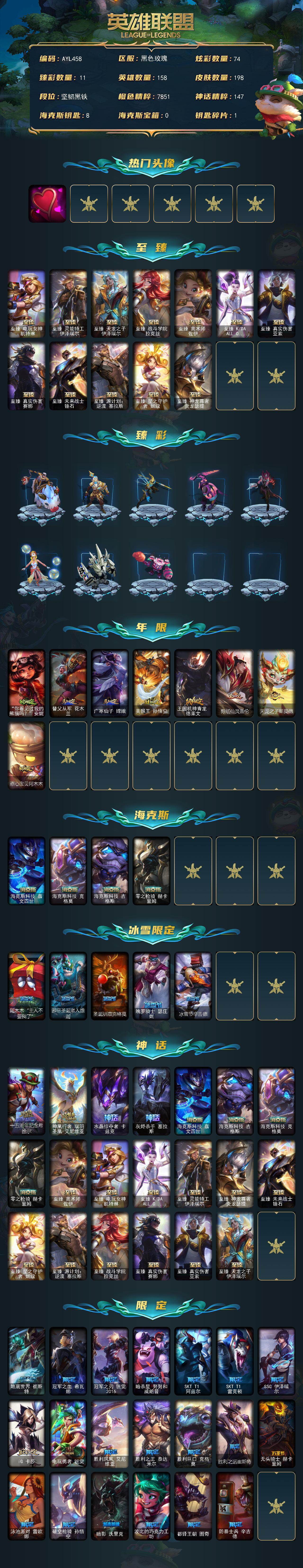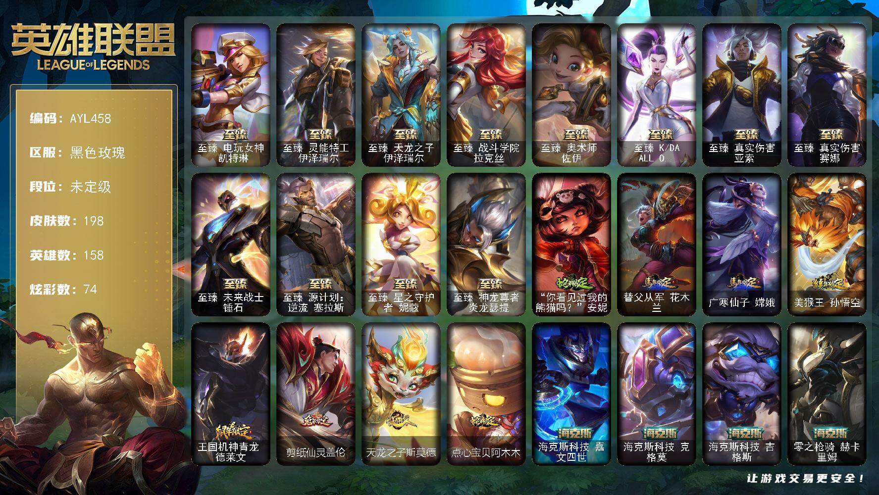 [15646759]可二次【特价出售/店主推荐】未定级段位-158英雄-198皮肤-74炫彩-0终极-20神话-33限定-24传说-38史诗