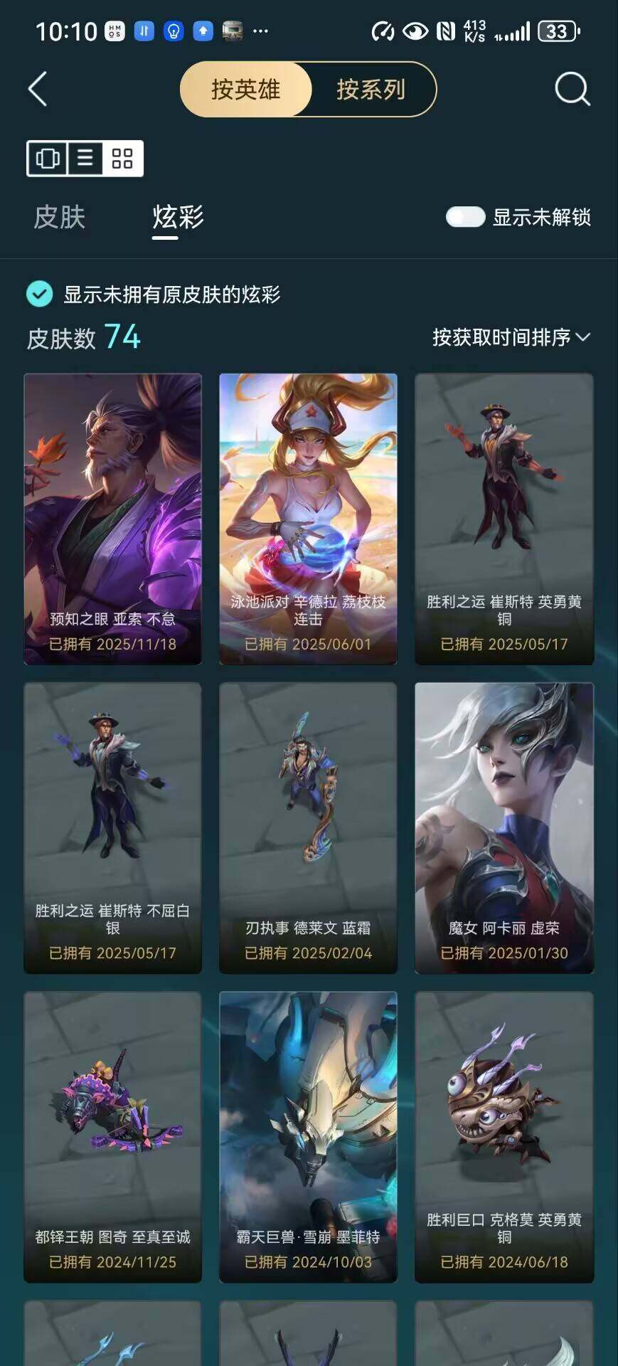 【臻彩皮肤】:无畏骑士瑟庄妮赤子初心,冠军之志瑞兹凯旋圣装,冠军之矛卡莉丝塔凯旋圣装,源计划毁灭派克幻灭,西部魔影卢锡安贝利尔之怠,泳池派对辛德拉荔枝枝连击,霸天巨兽雪崩墨菲特,可爱可爱粉红红布里茨,魔女阿卡丽虚荣,魔女阿狸饕餮,预知之眼亚索不怠