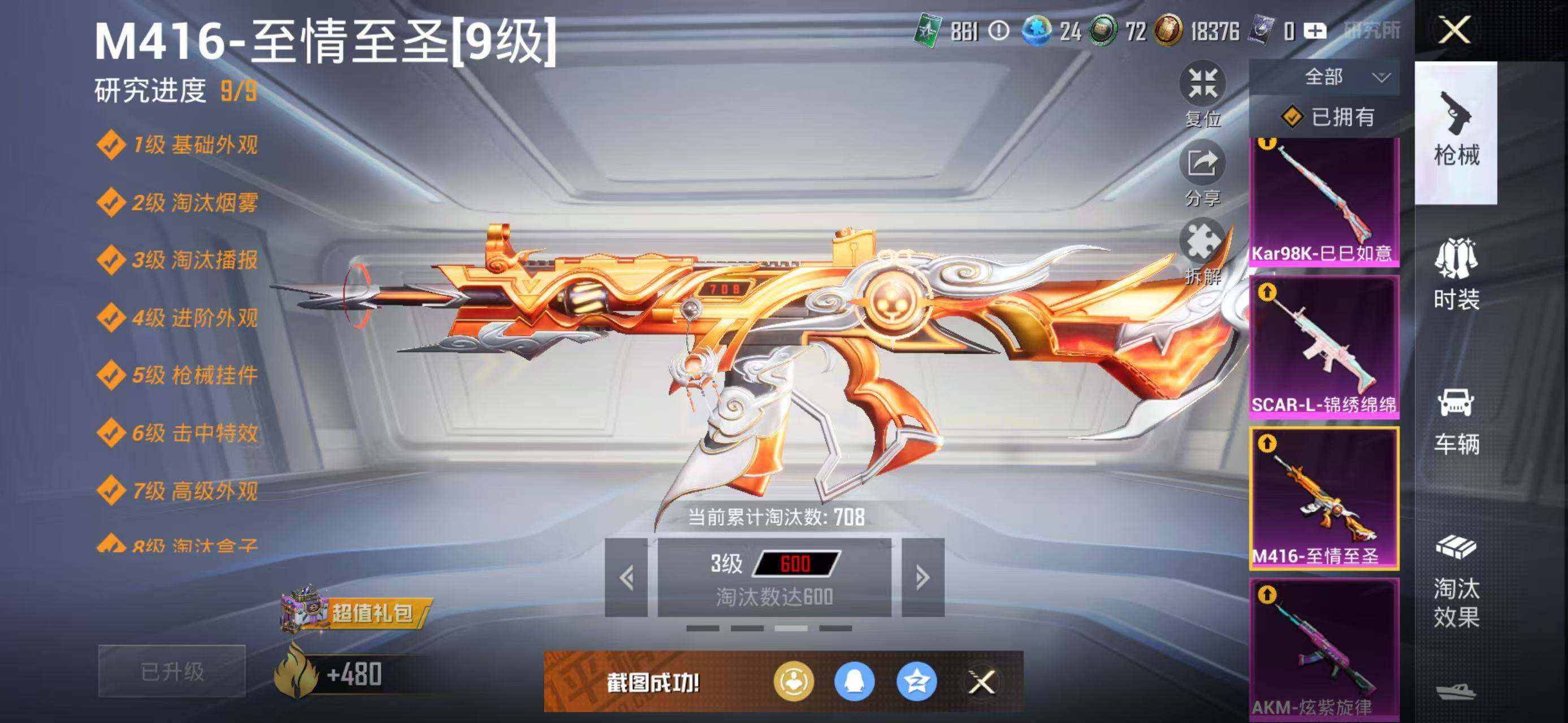 AKM-炫紫旋律,SCAR-L-锦绣绵绵,M416-至情至圣,Kar98K-巳巳如意