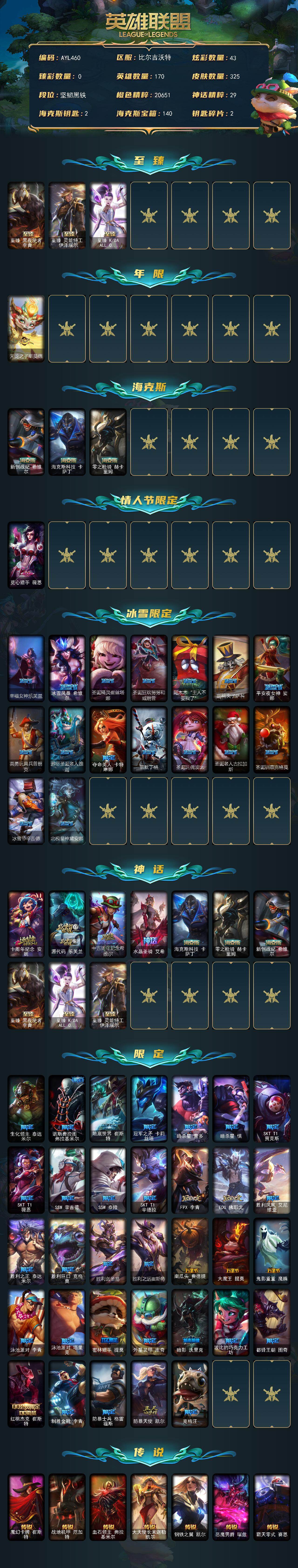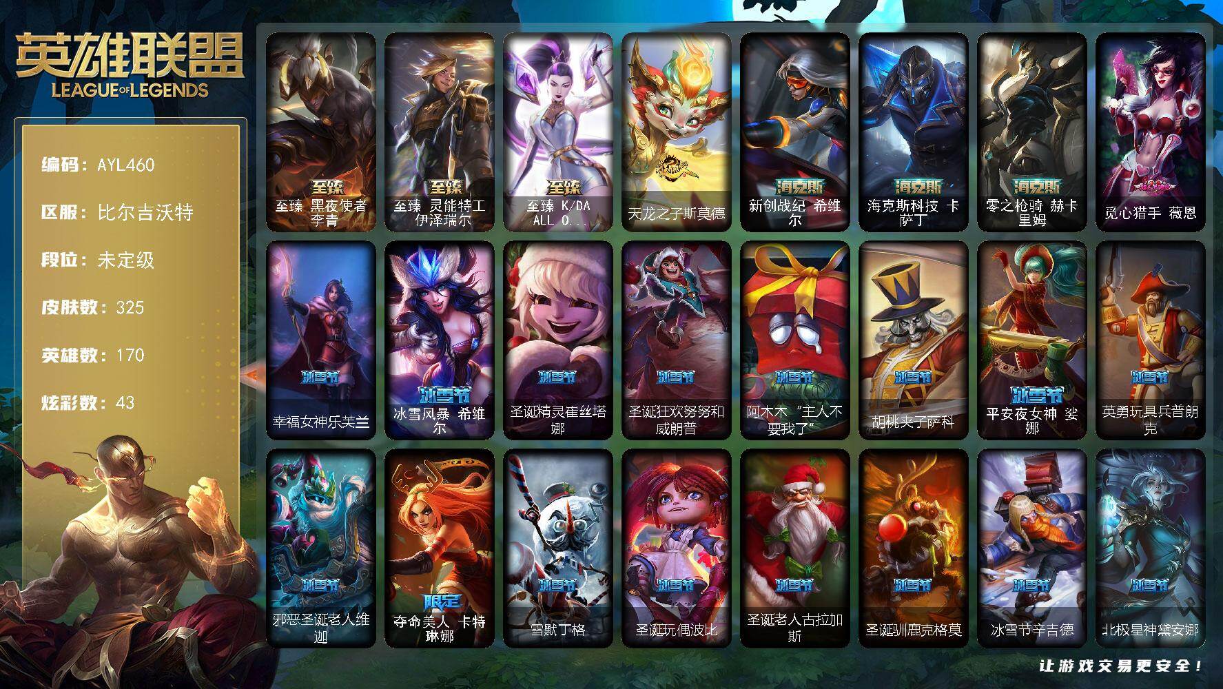 [15646936]【店主推荐捡漏号】未定级段位-170英雄-325皮肤-43炫彩-0终极-10神话-51限定-40传说-80史诗