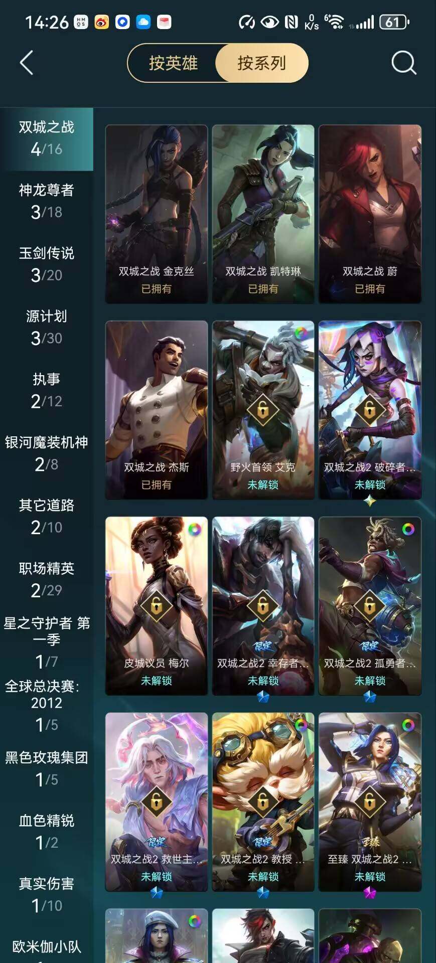 【其他皮肤1】:风执事加里奥,宗师级法师训练师瑞兹,光明骑士希维尔,欧米伽小队魔鬼伞兵,小蜜蜂努努和威朗普,玉剑传说苍鸾,玉剑传说风仙子,双城之战凯特琳,神龙尊者魔龙布兰德,银河魔装机神奈德丽,英仙座珀尔修斯潘森,刺身之拳阿卡丽,血色精锐泰隆,玉剑传说武剑仙,KDA阿狸,怒之火炮格雷福斯,魂蔷薇吉格斯,双城之战杰斯,银河魔装机神纳尔,真实伤害亚索,双城之战金克丝,双城之战蔚,永恒之森阿兹尔,灵能特工派克,神龙尊者炎龙瑟提