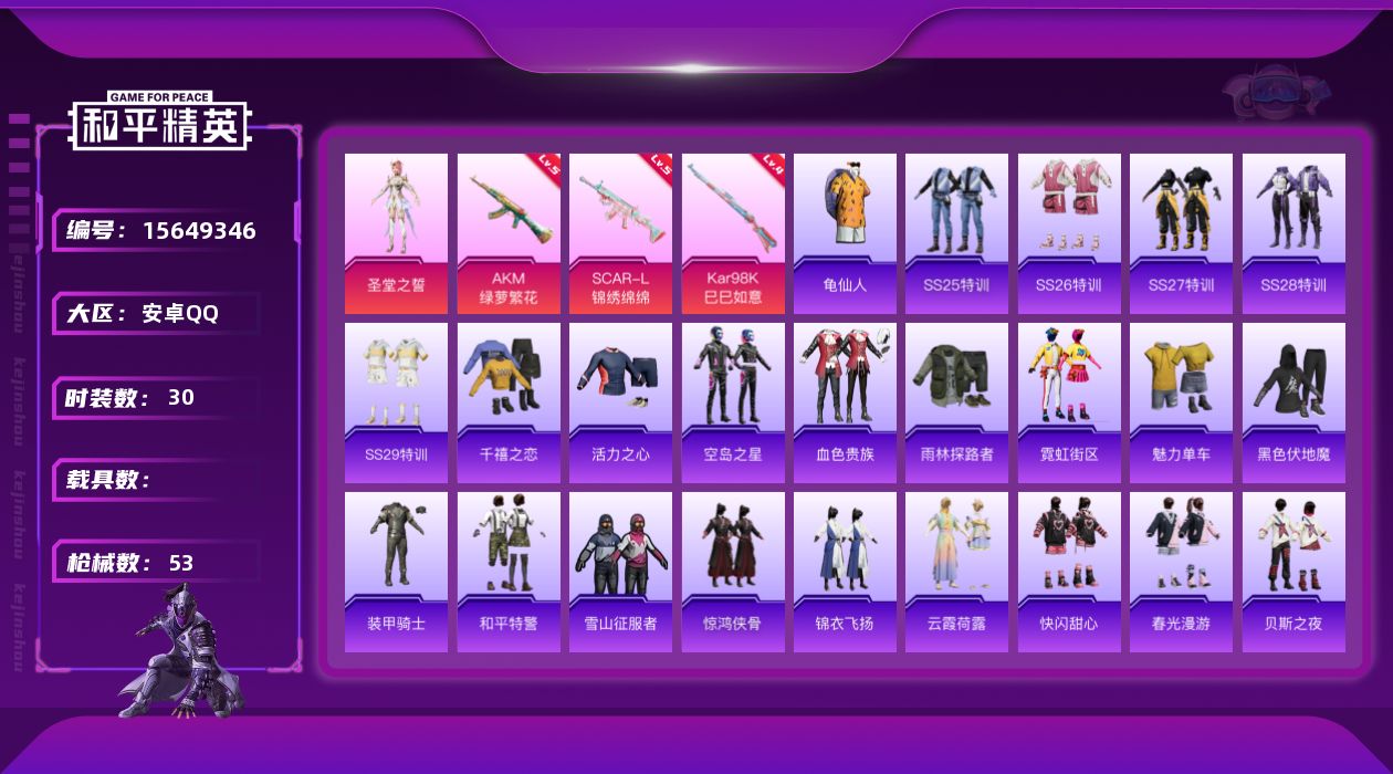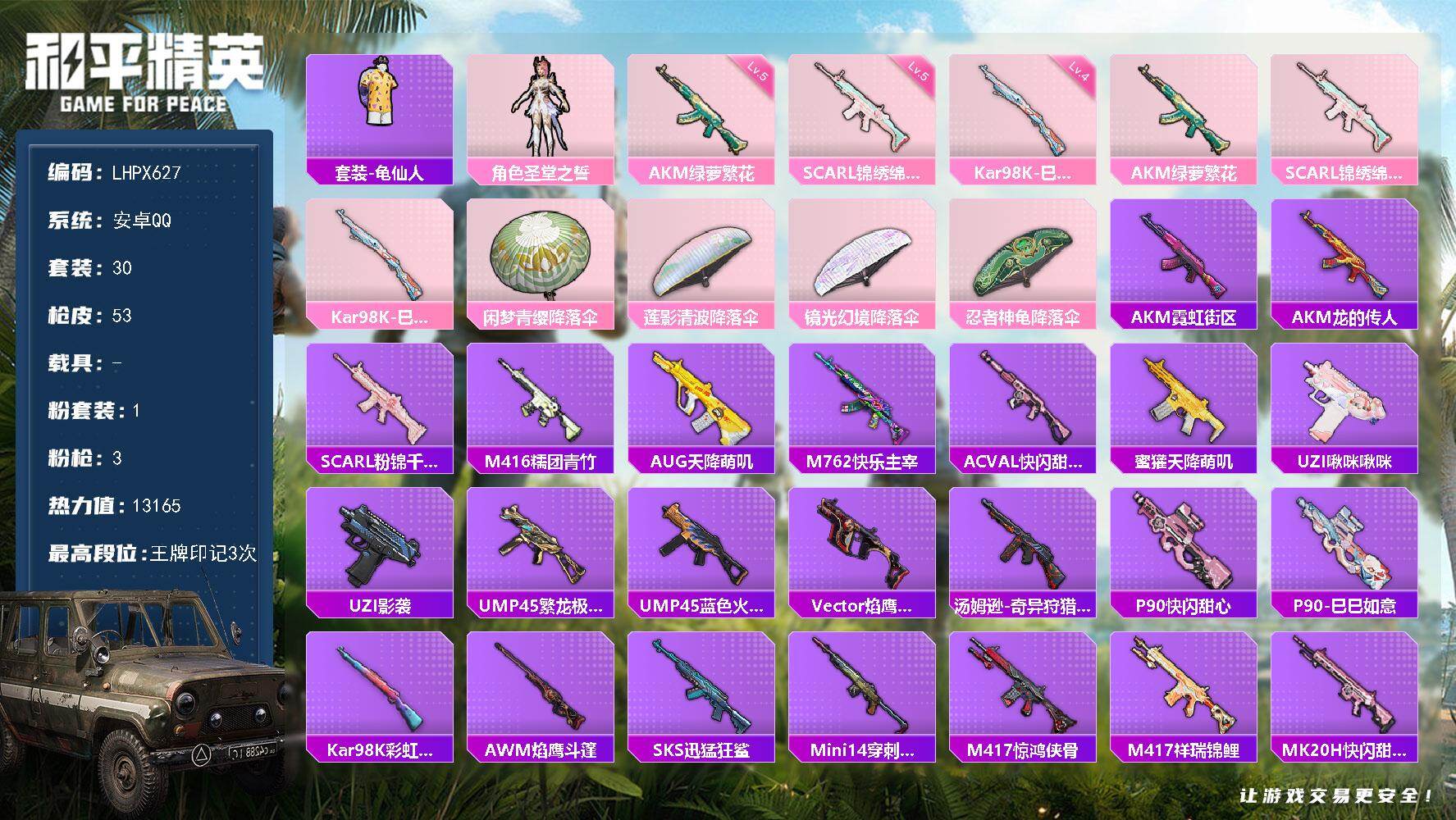 [15649346]【特价出售/店主推荐】安卓 手Q-1粉装-3特效枪-0载具-0粉色飞行器-13165热力值-3王牌印记-30套装-53枪皮