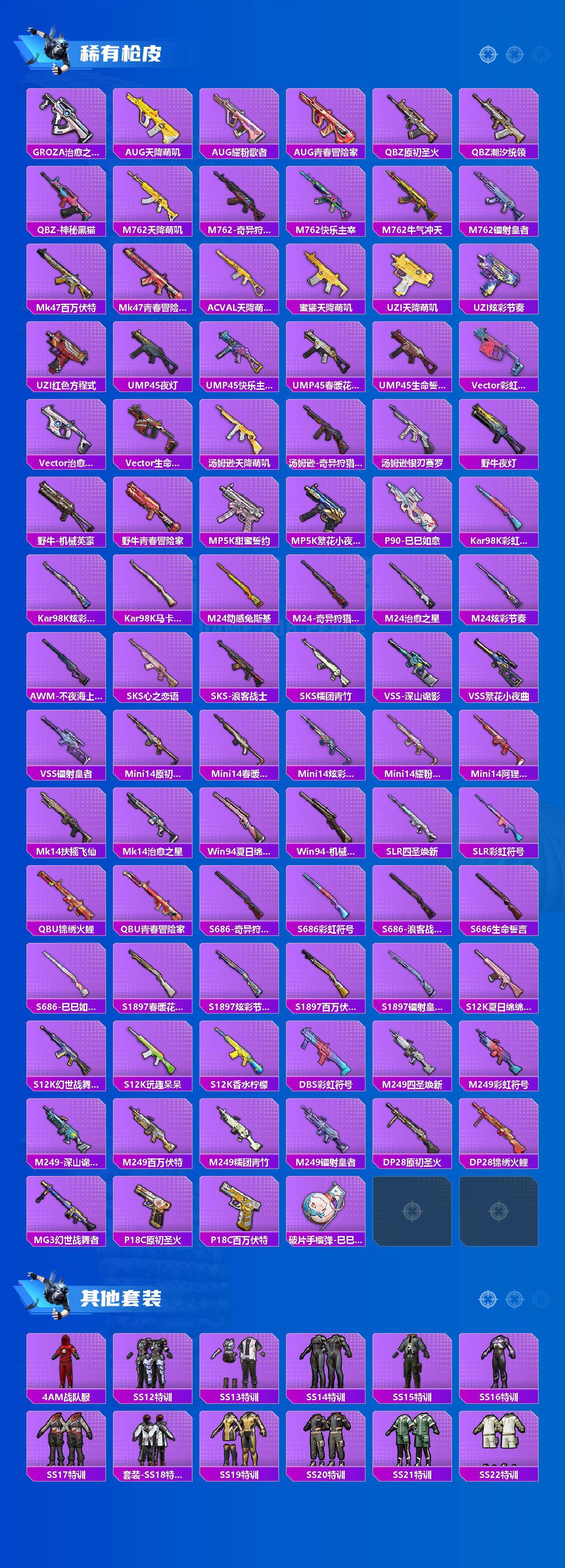AKM-奇异狩猎者,AKM-百万伏特,M416-快乐主宰,M762-奇异狩猎者,M24-奇异狩猎者,S686-奇异狩猎者