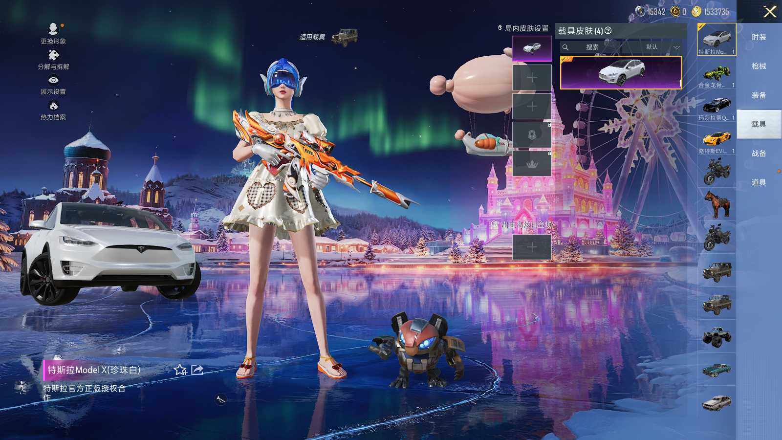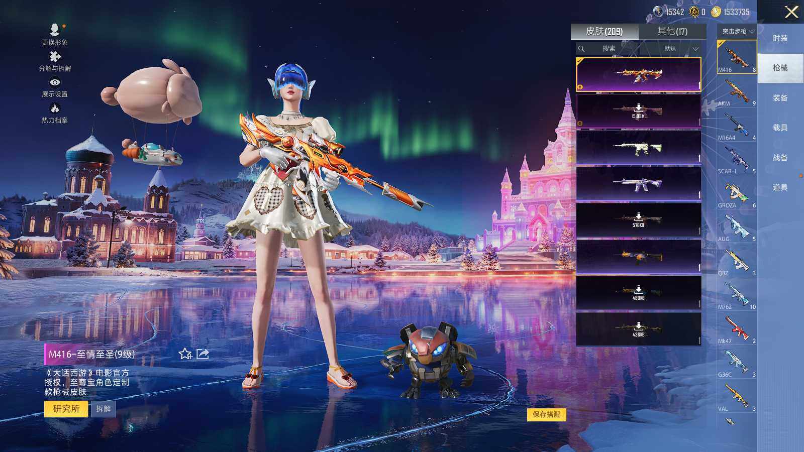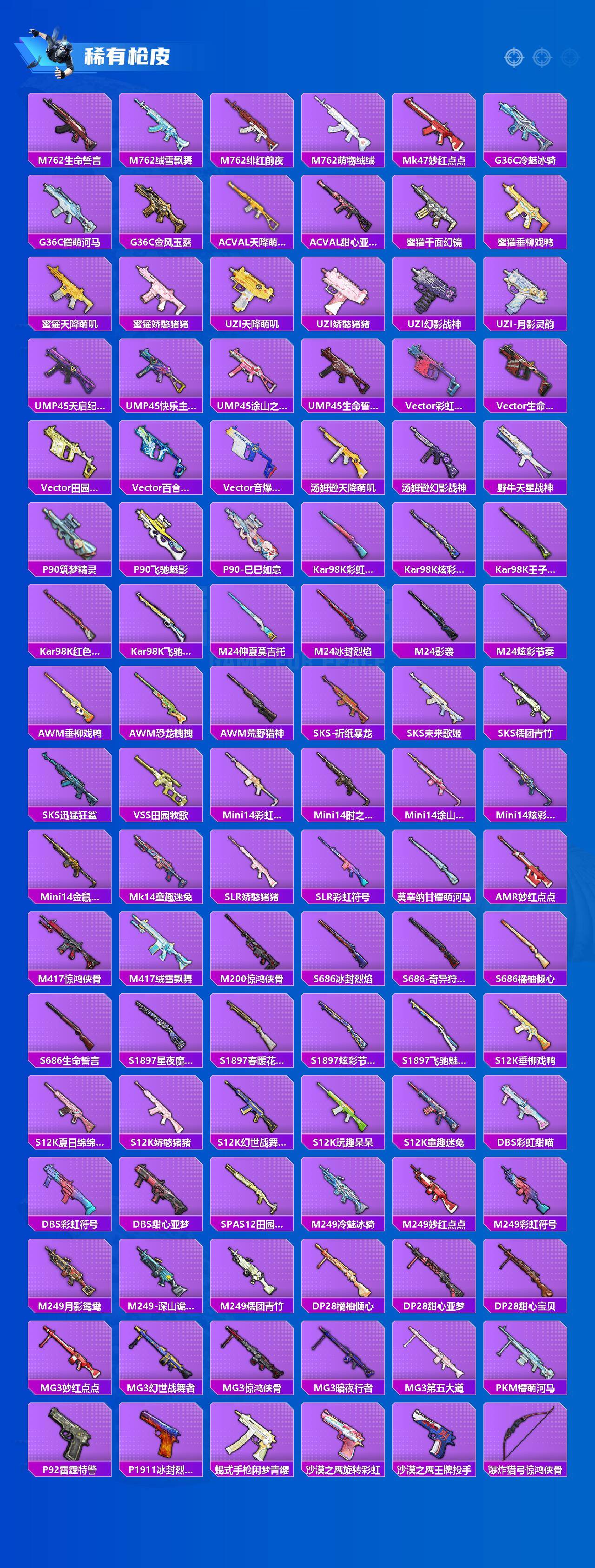 AKM-甜心宝贝,AKM-星际浪客,SCAR-L-青春物语,M416-心之恋语,M416-至情至圣,GROZA-玉面桃花,M762-冷魅冰骑,UMP45-恐龙拽拽,Kar98K-巳巳如意