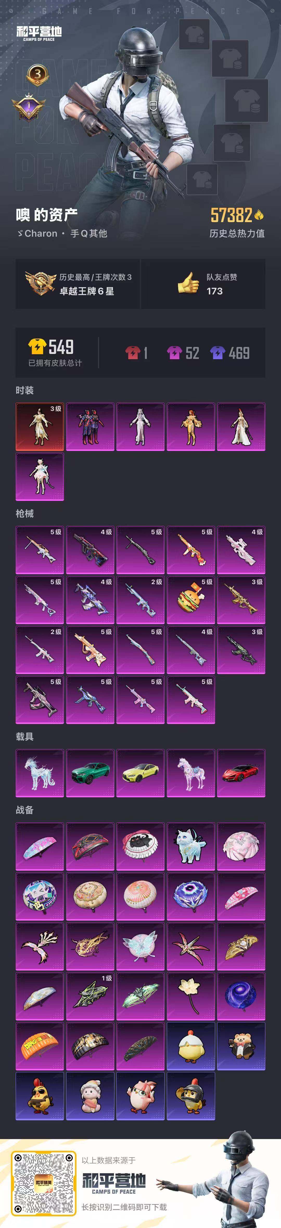- PX_2100090- 苹果手Q-17王牌印记-有战神框-17粉装-9特效枪-2载具-78050热力值-166套装-218枪皮-4卓越印记-2传奇印记 【17粉装】,初号机 觉醒Ver.,洛天依,白勺歌姬,千金淑猫,复仇流浪者,白兰星,小可学妹,紫电风暴,霞光圣骑,寒光使者,冰川粉黛,冰川幽秘,冰霜白皇,炙焰红王,纯珍童话,创世·救赎,呆萌星弥 【9特效枪】AKM-白勺歌姬-2级 AKM-梦之光华