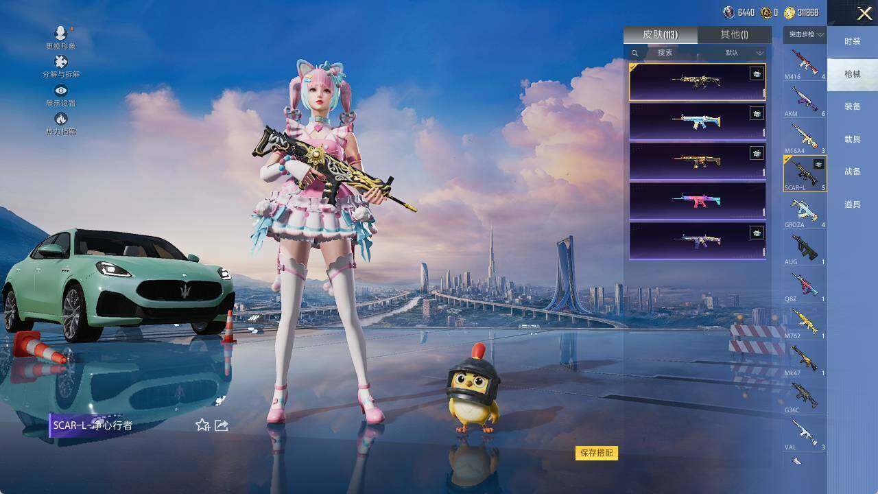 【粉色枪皮等级】:M16A4-垂柳戏鸭(五级),Kar98K-巳巳如意(五级),DP-28-豹影疾电(四级)