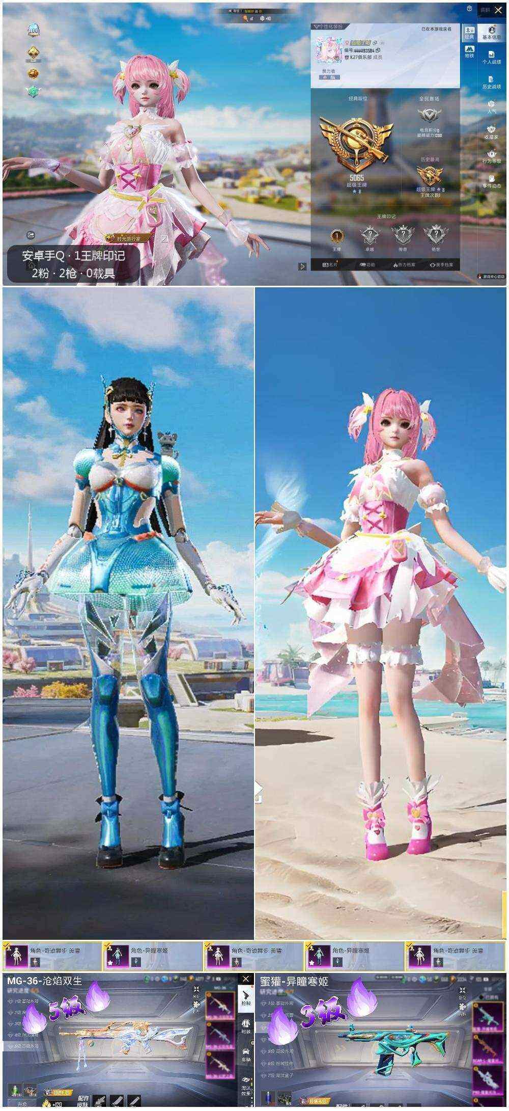 [15649823]【店主推荐捡漏号!可直接换绑】安卓 手Q-2粉装-2特效枪-0载具-0粉色飞行器-18404热力值-1王牌印记-41套装-79枪皮【粉色套装】:角色-奇迹舞步 美雪,角色-异瞳寒姬【粉色枪皮等级】:蜜獾-异瞳寒姬(三级),MG-36-沧焰双生(五级)【粉色枪皮】:蜜獾-异瞳寒姬,MG-36-沧焰双生