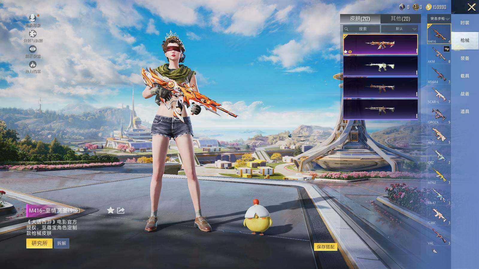 AKM-绿萝繁花,SCAR-L-锦绣绵绵,M416-至情至圣,GROZA-镜光银凌,AUG-暖羊咩咩,UMP45-量子极限,Kar98K-巳巳如意