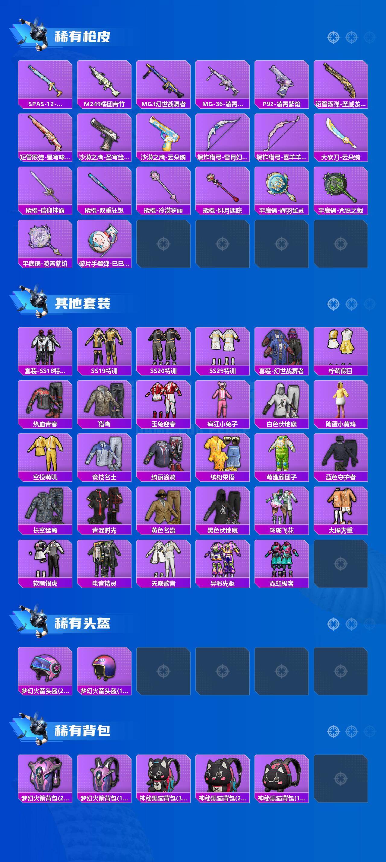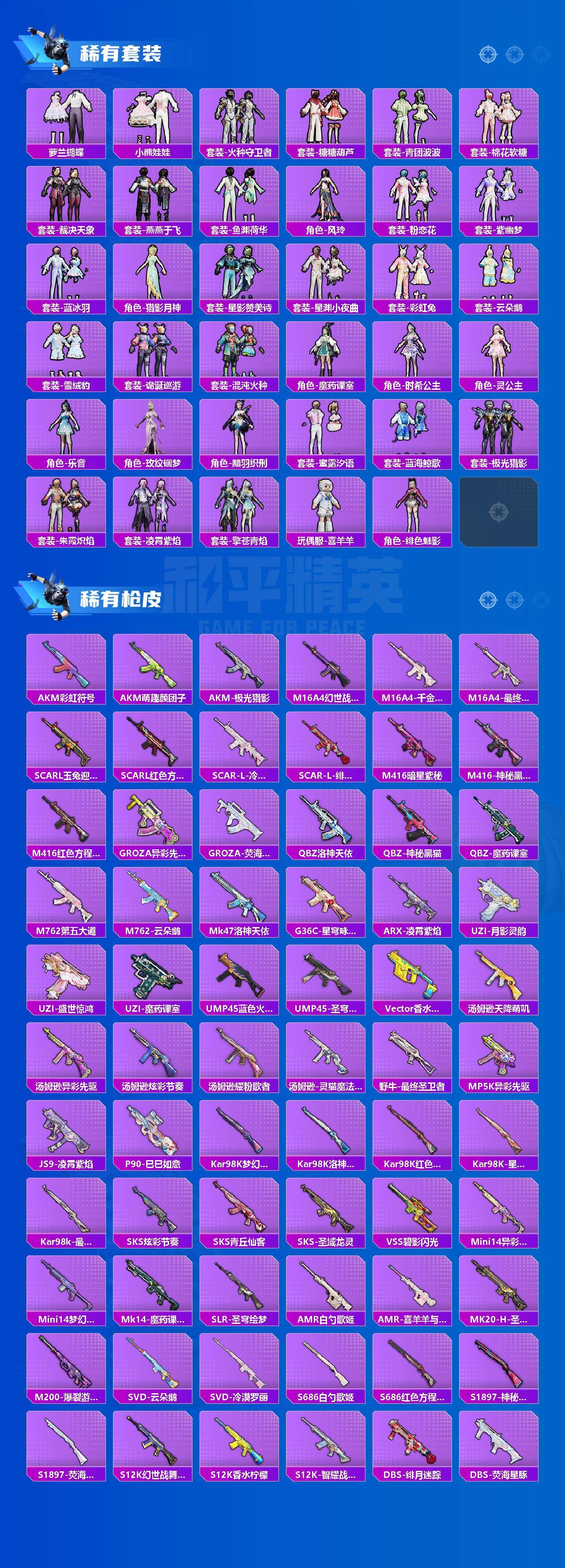 - [15218360]【店主推荐捡漏号!可直接换绑】5736k哈伏币-12m流动资产-60烽火等级-钻石-1战场等级-无军衔 【干员外观】:蜂医-送葬人·无题密令,无名-夜鹰,红狼-电锯惊魂 【近战皮肤】:近战-北极星,近战-黑鹰 【传说外观】:M4A1突击步枪-阿米娅,ASh-12战斗步枪-鹅鸭杀,SG552突击步枪-运动员,AK-12突击步枪-夜鹰,AK-12突击步枪-特斯拉线圈,SCAR-H战斗步枪-启航,CAR-15突击步枪-阿米娅,腾龙突击步枪-捞点薯条,K437突击步枪-北极星,KC17突击步枪-电锯惊魂,UZI冲锋枪-特斯拉线圈,SMG-45冲锋枪-骑士,SR-3M紧凑突击步枪-特斯拉线圈,勇士冲锋枪-能天使-午夜邮差,QCQ171冲锋枪-北极星,QCQ171冲锋枪-鹅鸭杀,725双管霰弹枪-送葬人-无题密令,M250通用机枪-骑士之心,QJB201轻机枪-鹅鸭杀,M14射手步枪-电锯惊魂,AWM狙击步枪-捞点薯条,93R-捞点薯条,复合弓-黑·天际线 【史诗外观】:AKM突击步枪-林中猎手,ASh-12战斗步枪-守夜人,ASh-12战斗步枪-无极限,M16A4突击步枪-竞赛选手,AUG突击步枪-蝮蛇,SG552突击步枪-尖端治疗,SG552突击步枪-深海恐惧,G3战斗步枪-流沙送葬,AS Val突击步枪-尖端治疗,AS Val突击步枪-百步穿杨,腾龙突击步枪-无垢,腾龙突击步枪-猎鳄行动,K437突击步枪-守护者,MP5冲锋枪-战术竞备,MP5冲锋枪-竞技风,Vector冲锋枪-阿萨拉文明,Vector冲锋枪-百步穿杨,SR-3M紧凑突击步枪-荒野求生,SR-3M紧凑突击步枪-战术竞备,勇士冲锋枪-深海恐惧,勇士冲锋枪-工业狂潮,MP7冲锋枪-无垢,MP7冲锋枪-守护者,M1014霰弹枪-林中猎手,PKM通用机枪-蝮蛇,PKM通用机枪-守夜人,PKM通用机枪-荒野求生,M250通用机枪-囚徒,Mini-14射手步枪-守护者,SVD狙击步枪-阿萨拉工艺,SVD狙击步枪-暗夜猎手,SVD狙击步枪-荒野求生,SR-25射手步枪-尖端治疗,PSG-1射手步枪-无垢,SV-98狙击步枪-林中猎手,SV-98狙击步枪-囚徒,M700狙击步枪-竞技风,M700狙击步枪-守夜人,M700狙击步枪-百步穿杨,M700狙击步枪-哈夫克警备,AWM狙击步枪-无极限,AWM狙击步枪-流沙送葬,