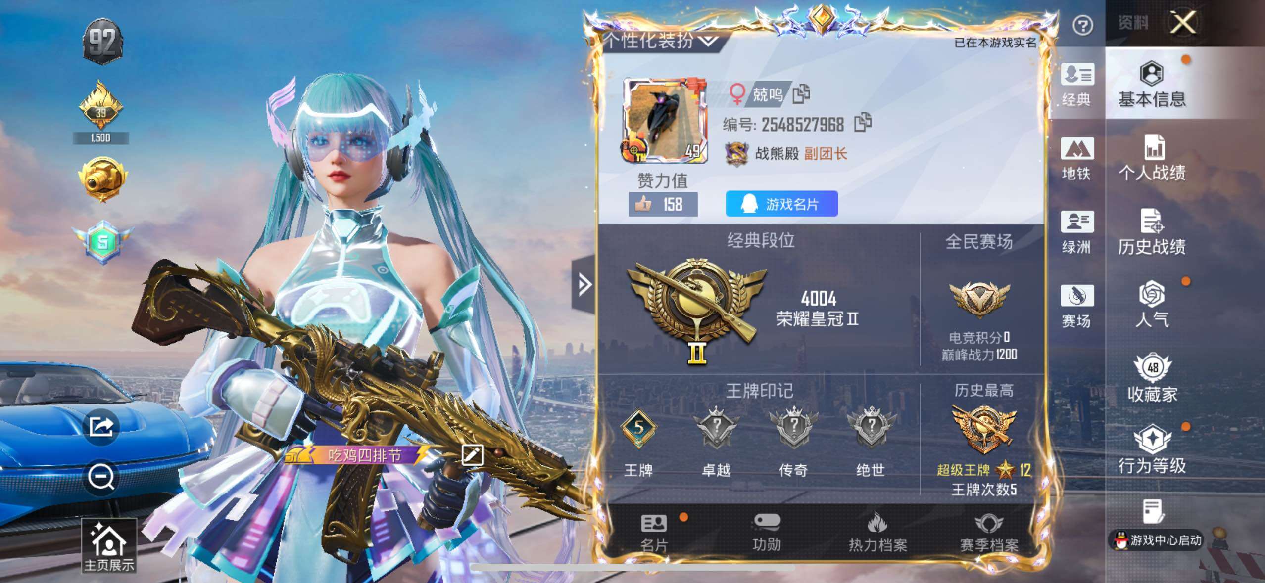 - PX_2113086-全能高手-对抗39段-打野28段-发育30段-项羽金标-安卓q-有二次-贵8-122英雄-303皮肤-1典藏-6传说-98限定-1天幕-2按键-贵族积分6w-营地ID:409351484【热皮:幻阙歌、神威、至尊宝、白虎志、启明星使、飞衡、武圣、辉光之辰、青春决赛季、孙行者、猪悟能、猎兽之王、蓝屏警告、朔望之晖、冰冠公主、乞巧织情、暗影游猎、】