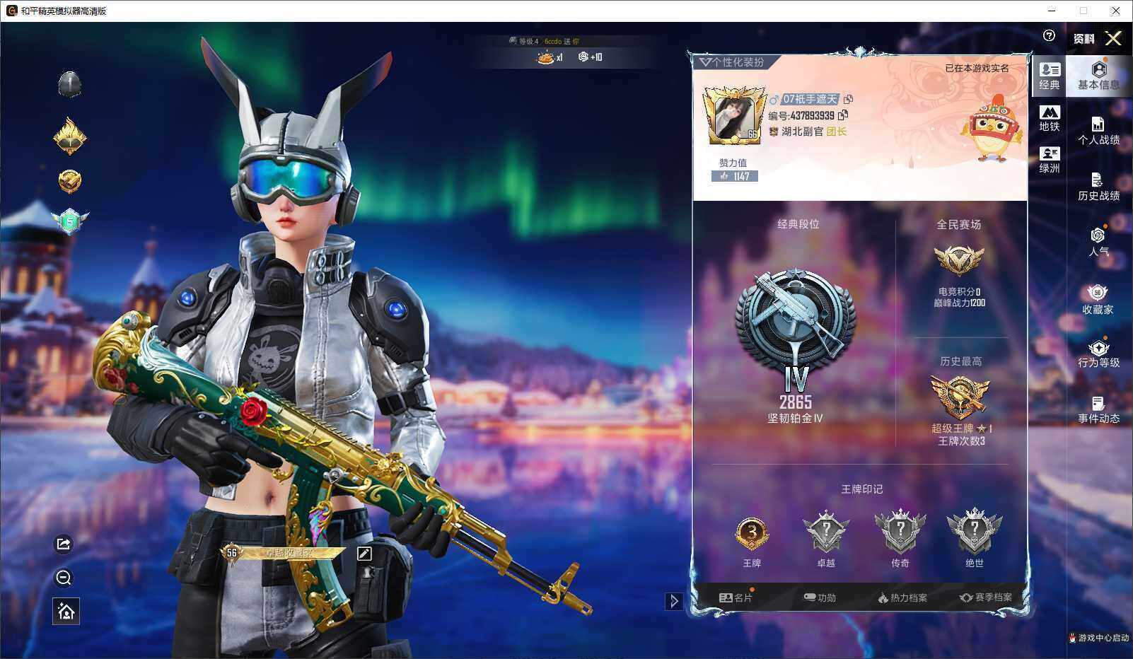 - PX_1959502-【蛇年限定全套】实名: 可修改 贵族等级: V7 英雄数: 51 皮肤数: 39 无双皮: 器灵·螭龙剑 珍品传说: 江户川柯南,怪盗基德 传说皮: 妄想实况,幻光神枪 限定皮: 引擎之心,傲雪梅枪,鸣野蒿,逐霄战戟,愿照·千秋盛,愿照·众生和,愿照·山河定,愿照·岁时盈,愿照·福禄聚,愿照·九州拓