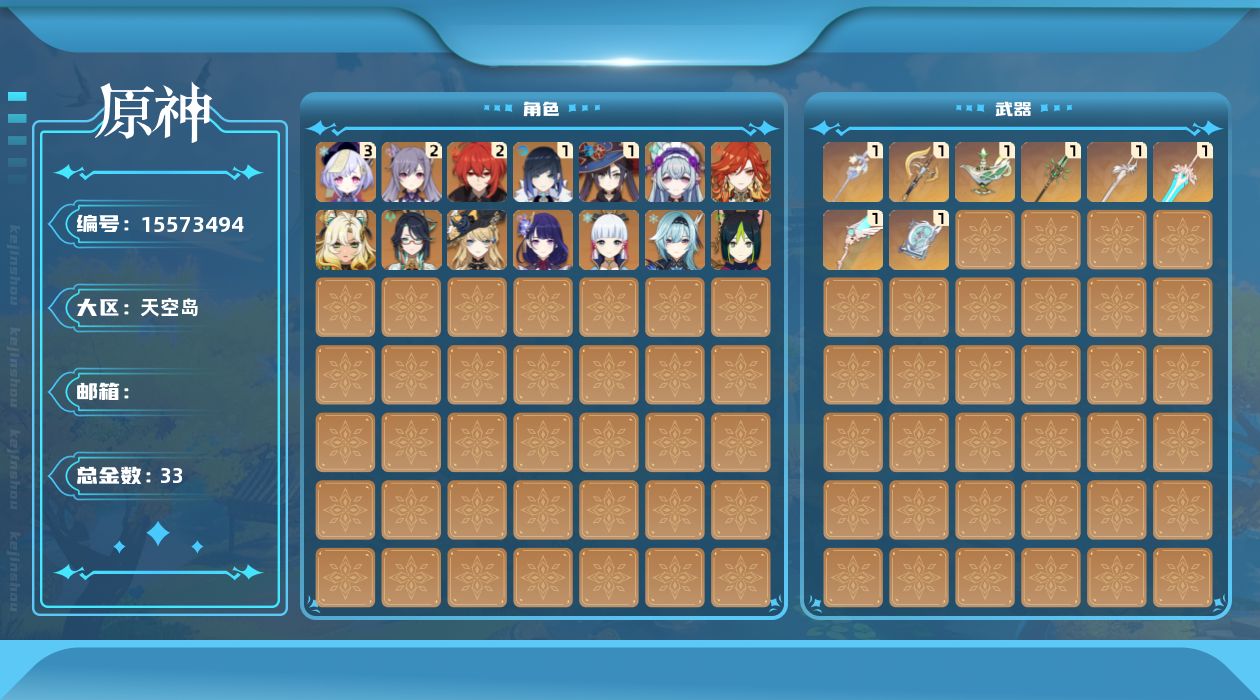 [15573494]58级/33黄/女主/15个五星角色/9个五星武器