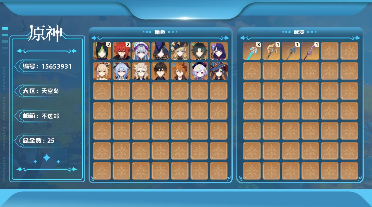 [15653931]57级/25黄/女主/15个五星角色/4个五星武器