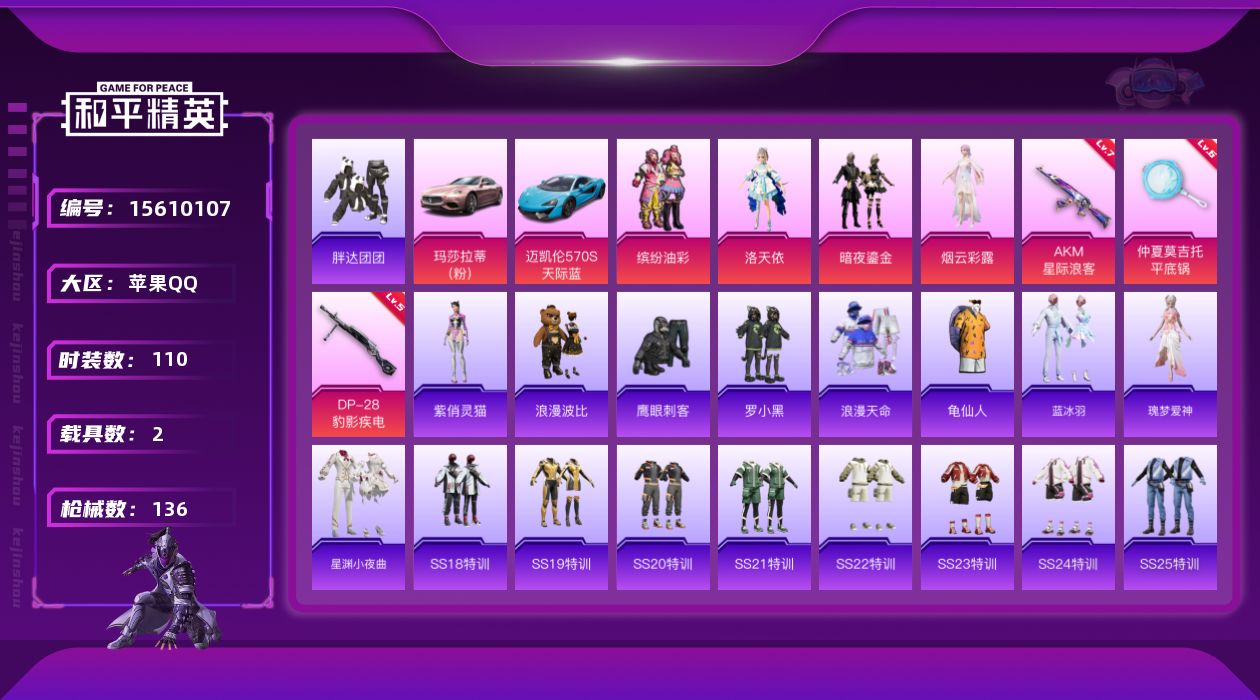 [15610107]地铁满天赋【店主推荐捡漏号!可直接换绑】苹果 手Q-4粉装-3特效枪-2载具-2粉色飞行器-45303热力值-7王牌印记-110套装-136枪皮