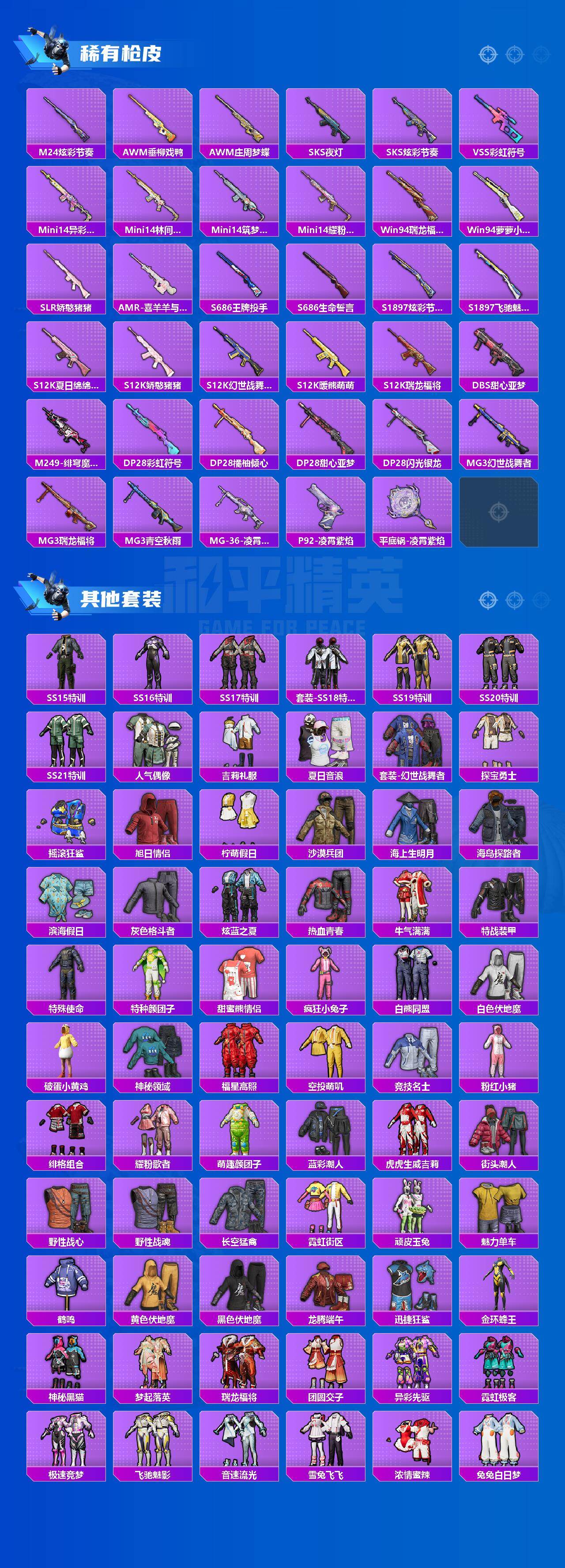 - [14226250]山东一区-72V-6王者-2炫金 【热门武器】:金色蔷薇-古蛇迷踪,修罗-古蛇迷踪,M200-竞技荣光,八面凌龙,死亡之眼*2,白虎-电玩蓝兔,汤姆逊-烈龙*4,加特林-炼狱,羊驼玩偶,裁决-雪莉杨,沙鹰-修罗*5,炽芒蝶刃 【王者炫金武器】:王者之怒*2,王者之锋,雷霆王者之锋,炫金黑龙,炫金雷神 【音效卡】:Barrett-碧霄极光音效卡,炼狱-百战金芒-庆典舞曲音效卡,沙鹰-修罗-盛典舞曲音效卡,死神-雪域霜狐-怀旧音效卡,AWM-昌龙-怀旧音效卡 【皮肤】:裁决-运输船 皮肤,雷神-暗月,雷神-能量核心,雷神-化蛇 皮肤,雷神-雪域霜狐 皮肤,M4A1-再燃火线,火麒麟-平天大圣,火麒麟-心动糖果,毁灭-暗月,毁灭-风暴*2,黑龙-能量核心,黑龙-暗月,M4A1-黑龙-361,无影-暗月,无影-能量核心,死神-秘银,天启-暗月,战神-粉色甜心皮肤,战神-紫绶金章皮肤*2,战神-流金岁月皮肤*3,天龙-能量核心,极光-能量核心,修罗-能量核心,天神-暗月,屠龙-破浪逐光 皮肤,屠龙-惊鸿 皮肤,轻型军用手斧-再燃火线,麒麟刺-甜蜜糖果 皮肤 【角色】:零,葵,瞳,电竞教官-云悠悠,战地猎狐,雪域霜狐,蛇隐宗,修道士,暗夜-X,初恋灵狐,芳心审判者,嘉年华灵狐,灵狐者-X,龙儿-小淘气,曼陀罗-X,潘多拉-X,潜龙队-X,青霞仙子,蛇姬,斯沃特-X,铁骑荣耀,兔囡囡,新娜塔莎,樱-战斗天使,影武者-X 【人偶武器】:裁决-雪莉杨,迷你救赎猎手,异变清道夫-蛇影双骄,AWM-灵狐-15周年嘉年华*2,M37-葵,COP-旗袍,迷你深渊冰龙,迷你裂空之翼,迷你牛魔王,夺魂,迷你生化手雷*3,生化手雷-机甲核心*3,闪光弹-小乔,灵狐娃娃手雷 【暴走生化】:双面神,死亡之眼*2,超级对讲机 【挑战大师】:冰龙粉碎者-白马银枪,激光毁灭者III,KAC-圣炎切割者III,神圣爆裂者-末日III 【英雄级武器】:AK47-火麒麟*2,M4A1-黑龙,M4A1-雷神*3,AK47-无影,AK47-黑武士,无影-神兵利器,八面凌龙,金色蔷薇-古蛇迷踪,死神-雪域霜狐,AK-47-猩红传说*6,AK47-B-战神,白虎-电玩蓝兔,AWM-天龙,Barrett-毁灭,Barrett-极光,AWM-裁决,M200-竞技荣光,Barrett-金色蔷薇,加特林-炼狱,炼狱-百战金芒,