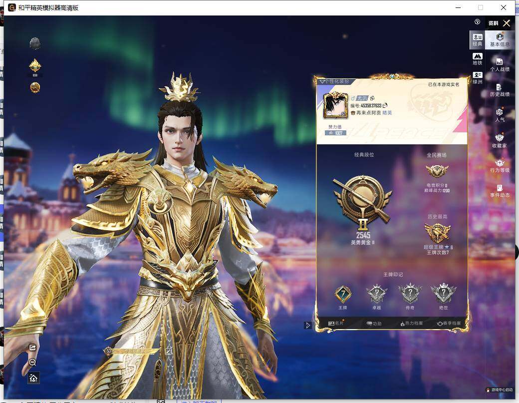 - [12075308]V9 2典藏 33传说 125英雄 462皮肤 可修改实名 优质装备:鸣剑·曳影,拾光映像(瑶典藏),黄金射手座,云鹰飞将(小将军),绛天战甲(鸡嘴战神),久胜战神,炽阳神光,末日机甲-孙尚香(绿蚂蚱),仲夏夜之梦(大飞蛾),音你心动-小乔,胖达荣荣,李逍遥,超时空战士-狄仁杰,碎云,浮生妄,鹤羽星尊,妄想奇谈,黄金天蝎座,千山共赴,涂山容容 传说皮:云诺千山,铠冥王哈迪斯,续相思,星之鸣奏,祥瑞亨通,幻光神枪 珍宝阁皮:妄想食味,胡桃夹子,女武神 限定皮:愿照·九州拓(澜年限),愿照·山河定(司空震年限),愿照·千秋盛(女娲年限),逐霄战戟,鸣野蒿,至尊宝,凤求凰(白切鸡),凤凰于飞,傲雪梅枪,绯月行,魔法小厨娘,时雨天司(水龙头),神威(电光马子),飞衡(韩信年限),遇见飞天,高山流水,诗剑行,降魔,五谷丰年,天狼运算者,梁祝,御风骁将(吕布年限),龙胆,烈魂,天狼溯光者,逐梦之音,祈雪灵祝(雪兔子),天狼绘梦者,李小龙,逐梦之影,朱雀志(守约年限),孙行者,猪悟能,大圣娶亲,引擎之心,青春决赛季,乒乒小将,蜜橘之夏,玉兔公主,时之奇旅-妲己,神器·万象笔 史诗皮:鸭鸭历险记-刘禅,苍鳞隐世,器灵·浮梦炉,糖绘人间,绮世丹青,瑰影绮梦,化蝶舞,灵蛊蚀心,星界战将,龙之律动,雪豹·霜爪,藏狐·褐绒,布丁狗之誓,百相守梦-周瑜,戍鼓铭心,茶境仙,怒海争锋,破空之剑,涂山红红,东方月初,蒙犽顽岩魄,芈月浮光幕影,琥珀纪元伽罗,上官婉儿群星魔术团,蔬乡物语(鲁班七号),超元猎域,百相守梦-百里守约,星界特工,百相守梦-黄忠,织梦人,紫霞仙子,苍穹之光,电玩小子(小书包),白龙吟,黄金分割率,特工魅影,千年之狐,江河有灵,鹤归松栖(赵怀真),真我赫兹(百里守约),魅语,百解令(蒙犽),高渐离燃音魔法,蒙恬荣光圣徽,无限星赏官,冰冠公主,青蛇,偶像歌手,白蛇,晚萤,电玩·爆裂旋风,暗夜猫娘,末日机甲-吕布,猫狗日记-孙策,猫狗日记-大乔,时之恋人-孙尚香,乱世虎臣,节奏热浪,修罗,女仆咖啡,摇滚巨星,水果甜心,绅士熊喵,天才门将,星夜王子,心灵骇客,功夫厨神,德古拉伯爵,暗隐猎兽者,幽灵船长,鬼剑武藏,暗渊魔法,心灵战警,乐园奇幻夜,天秀·启明,舞动绿茵,地狱岩魂,诗语江南,纤云弄巧,繁星吟游(呼啦呼啦),拒霜思,缤纷独角兽,乘风破浪,逐浪之夏,龙鼓争鸣,月团寄思,水晶猎