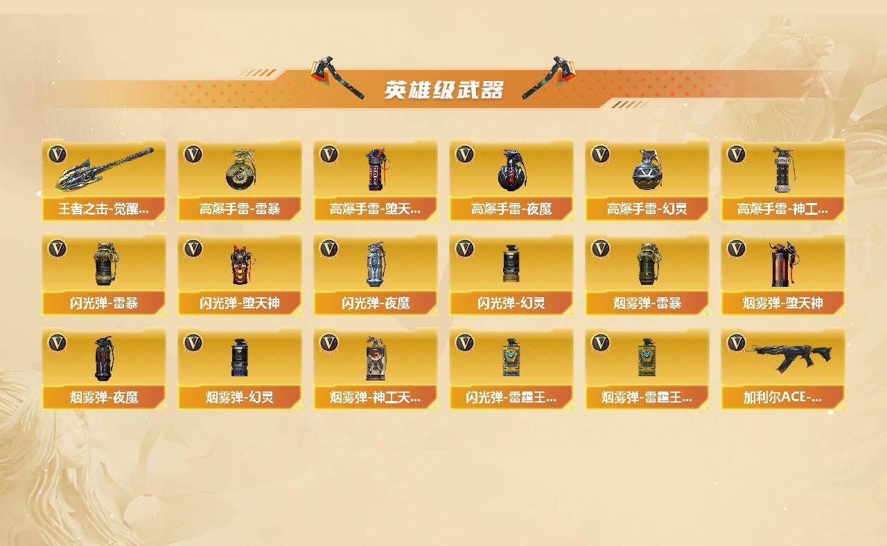 【皮肤】:幻神-周瑜皮肤,幻神-冠军之幻,雷神-耀金皮肤,雷神-传奇N9,雷神-宠儿-2019MVP,雷神-R.LGD-CFPLS18冠军,雷神-烈虎皮肤,雷神-机甲刑天皮肤,火麒麟-AG战队皮肤,火麒麟-雷神,火麒麟-轻羽皮肤,火麒麟-平天大圣*2,火麒麟-百城*2,毁灭-荣耀之怒,毁灭-黑大圣皮肤,毁灭-魔灵皮肤,M4A1-千变-孔明皮肤,黑龙-能量核心,黑骑士-暗月,黑骑士-冠军之势,战神-流金岁月皮肤,AK47-B-常胜将军-曹操,AK47-B-常胜将军-刘备*2,AK47-B-常胜将军-孙权,AWM-天龙-传奇白鲨,极光-能量核心,修罗-能量核心*2,天神-暗月