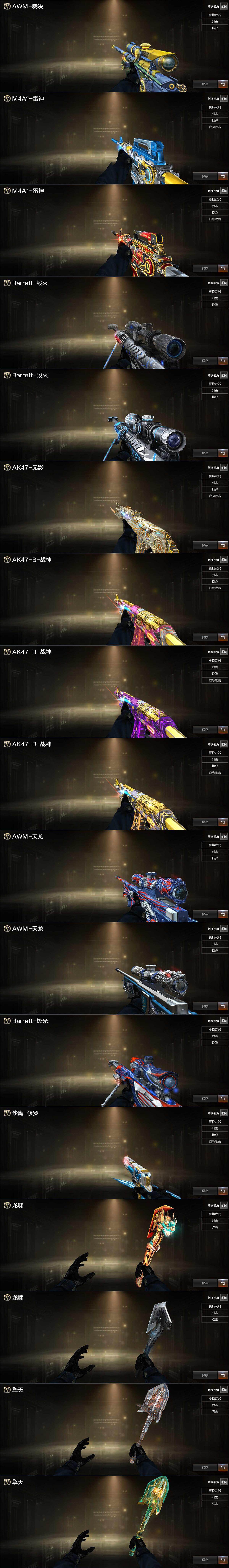 【王者炫金武器】:王者之圣,王者之城,王者之戮,王者之幻,王者之势,王者之武,王者之影,王者之心,王者之烈,QBZ-03-王者蔷薇,王者之光,王者之怒*2,王者之锋,炫金雷神,炫金武士,炫金超新星,炫金毁灭*3