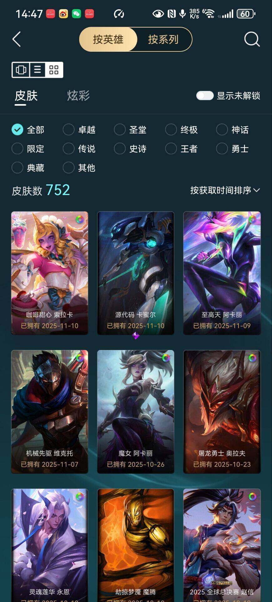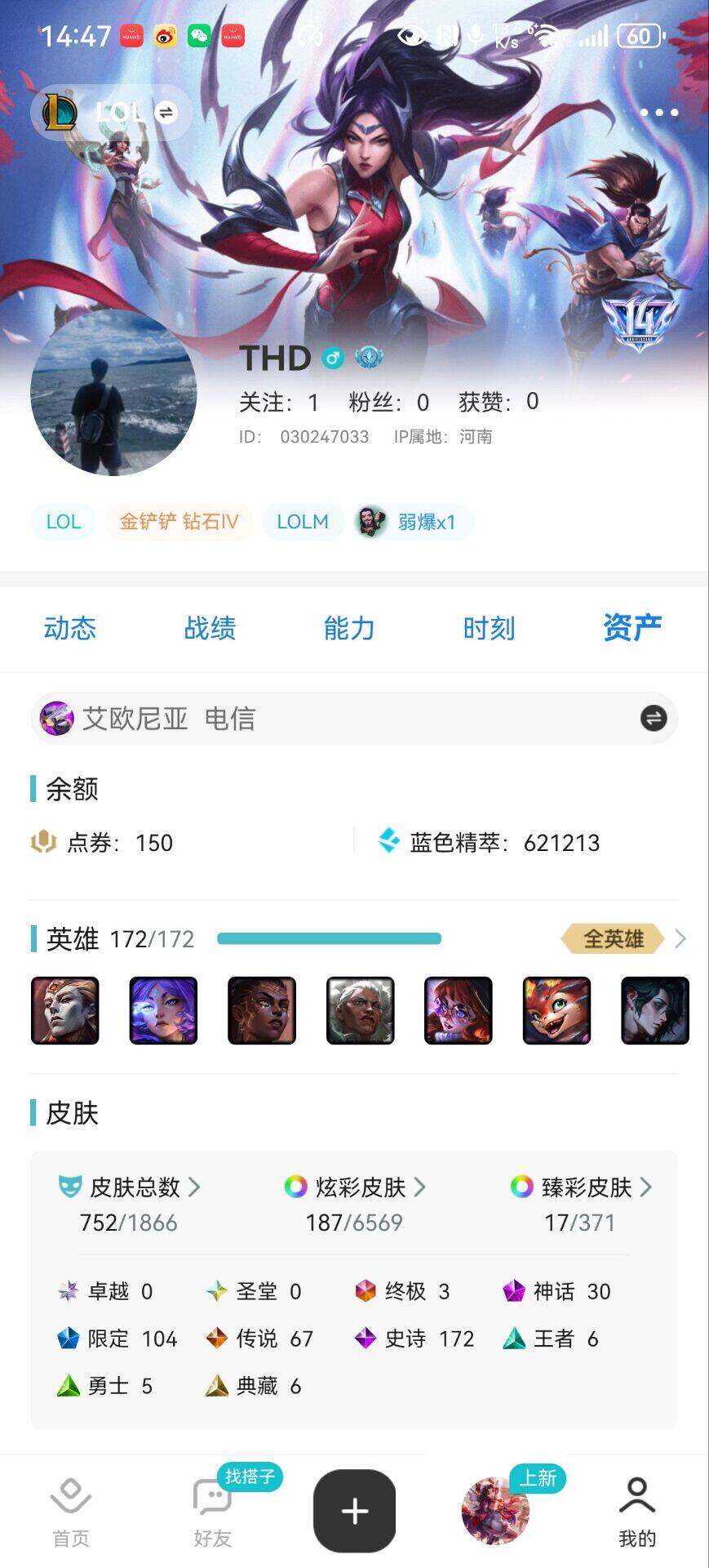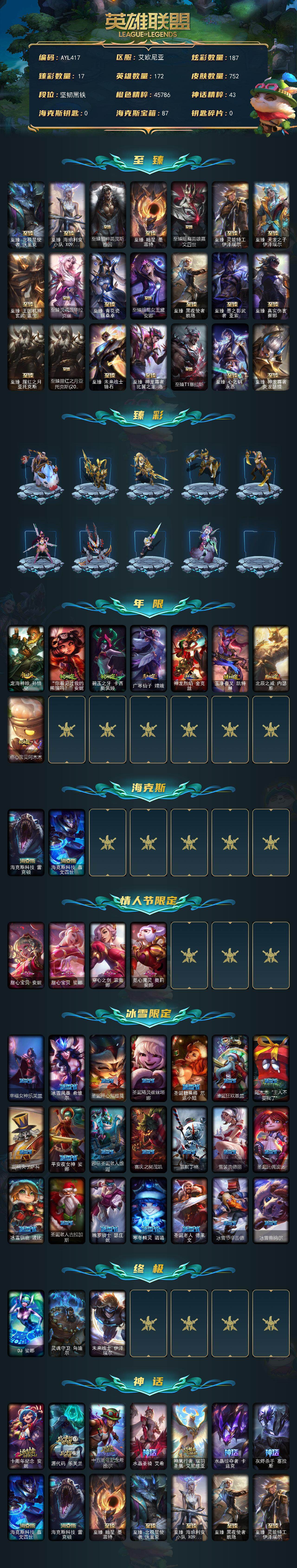 [15660307]【特价出售/店主推荐】未定级段位-172英雄-752皮肤-187炫彩-3终极-30神话-104限定-67传说-172史诗