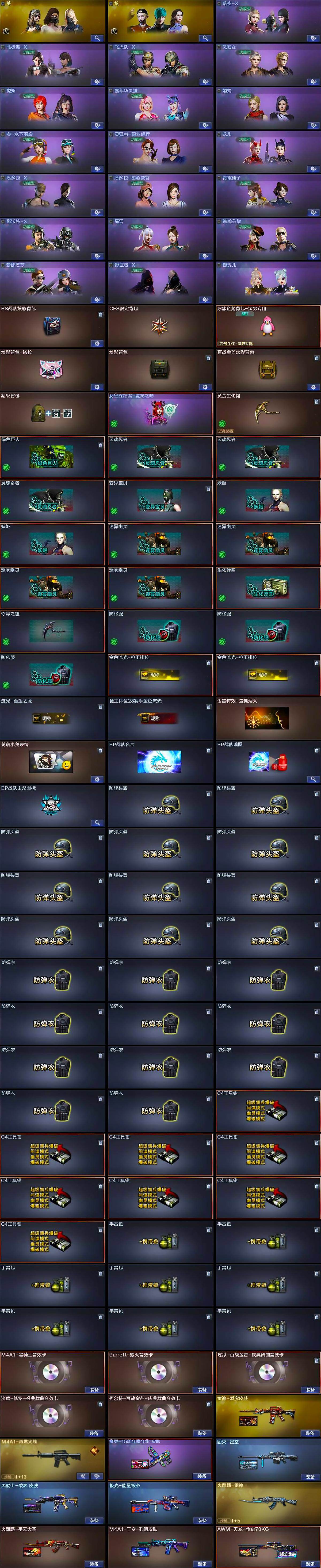 【道具】:BS战队炫彩背包,CFS限定背包,冰冰企鹅背包-猛男专用,炫彩背包-诺拉,炫彩背包,百战金芒炫彩背包,超级背包,女皇终结者-魔龙之吻,黄金生化钩,绿色巨人,灵魂忍者*3,变异宝贝,妖姬*2,迷雾幽灵*4,生化弹匣,夺命之镰,防化服*3,金色流光-枪王排位