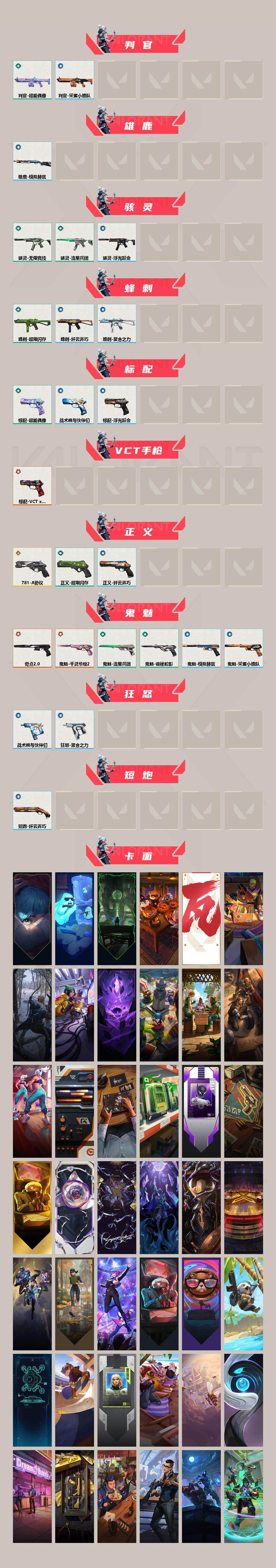 【卡面】:《双城之战》拥抱 卡面,精灵大战 卡面,欢迎来到底城 卡面,南瓜盛典 卡面,VCT CN首冠 卡面,唱片的故事 卡面,钢弓与箭弦 卡面,排除故障 卡面,奇点//2.0 卡面,战术桌游 卡面,悠享食光 卡面,修车达人 卡面,热舞环节 卡面,模拟赫兹 卡面,浮光跃金 卡面,超限闪存 卡面,维斯工牌 卡面,正义的化身 卡面,终章:生意人麦宝 卡面,铁之华 卡面,2024全球冠军