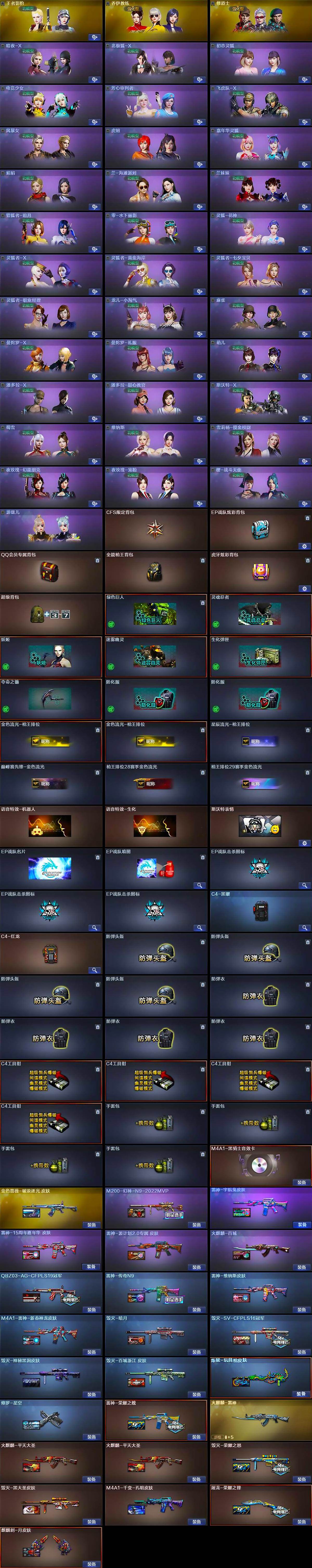 【皮肤】:M200-幻神-N9-2022MVP,QBZ03-AG-CFPLS19冠军,金色蔷薇-破浪逐光 皮肤,雷神-荣耀之魄,雷神-传奇N9,雷神-宇航兔皮肤,雷神-15周年嘉年华 皮肤,雷神-维纳斯皮肤,M4A1-雷神-新春神龙皮肤,雷神-源计划2.0专属 皮肤,火麒麟-雷神,火麒麟-平天大圣*2,火麒麟-百城,毁灭-暗月,毁灭-荣耀之怒,毁灭-SV-CFPLS16冠军,毁灭-黑大圣皮肤,毁灭-神秘黑洞皮肤,毁灭-百城浙江 皮肤,M4A1-千变-孔明皮肤,炼狱-玩具枪皮肤,修罗-星空,屠龙-荣耀之锋,麒麟刺-月皮肤