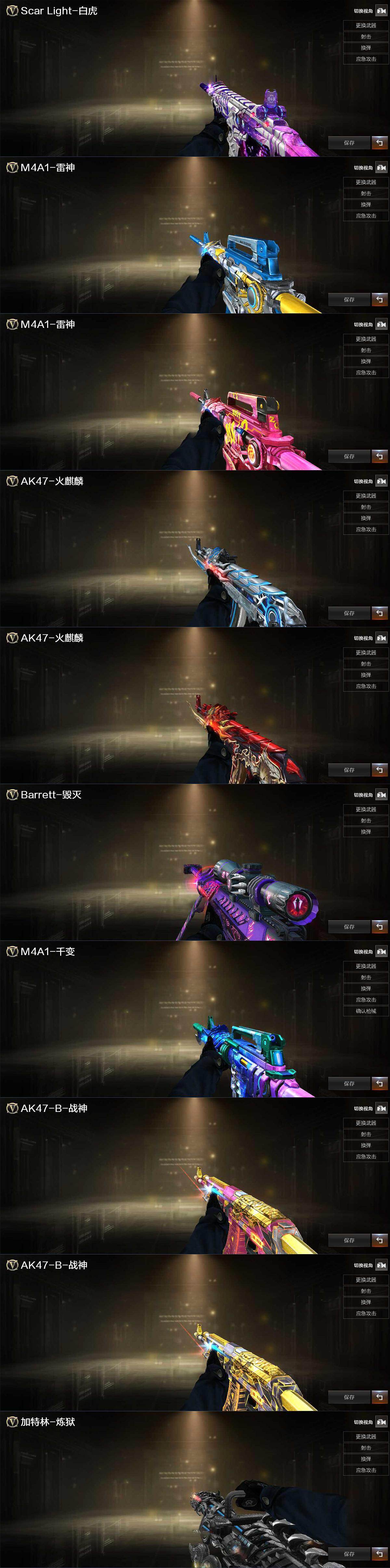 【热门武器】:Scar Light-白虎,M200-竞技荣光,死亡之眼,RPK-盘龙,加特林-炼狱