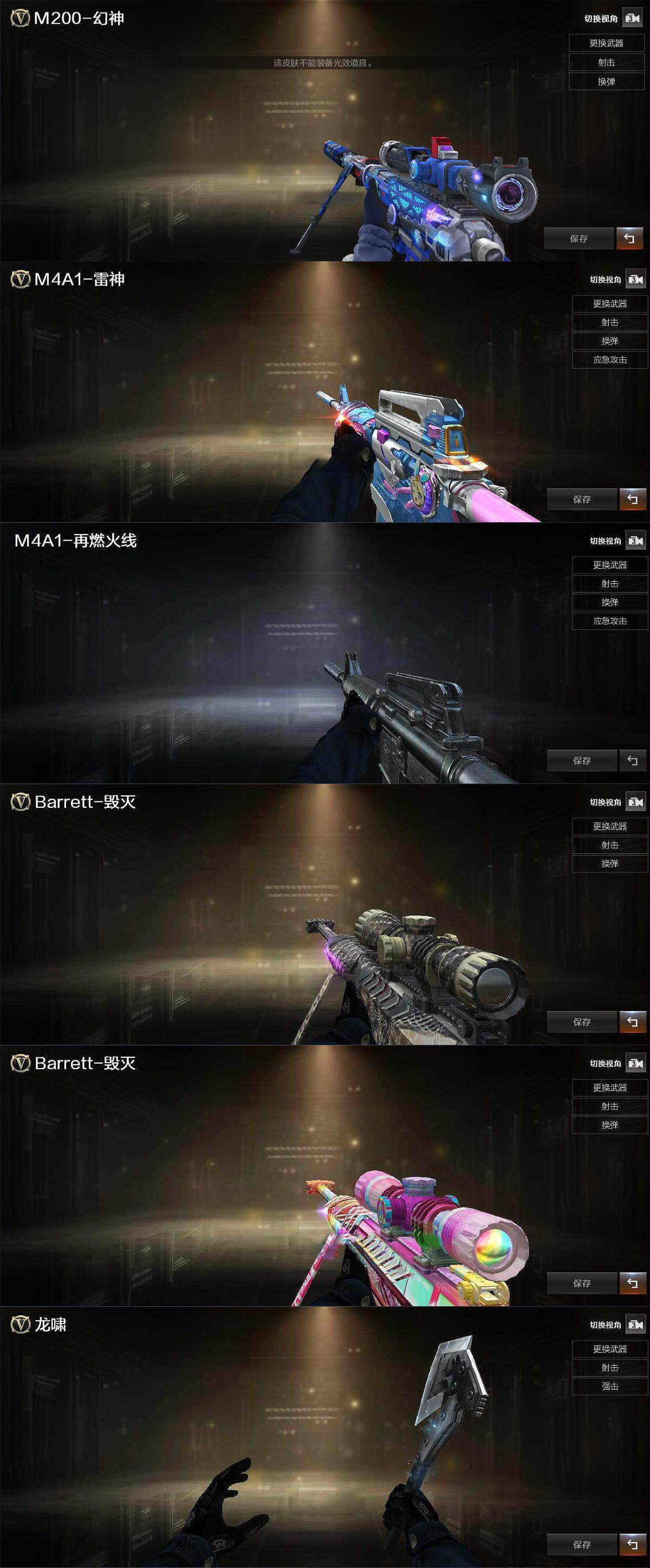 【皮肤】:幻神-电竞之星 皮肤,雷神-宇航兔皮肤,M4A1-再燃火线,毁灭-黑曼巴 皮肤,毁灭-虹光风暴 皮肤,轻型军用手斧-再燃火线