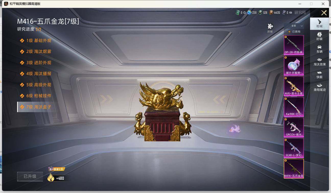 SCAR-L-梦幻火箭,M416-五爪金龙,GROZA-镜光银凌,Kar98K-巳巳如意