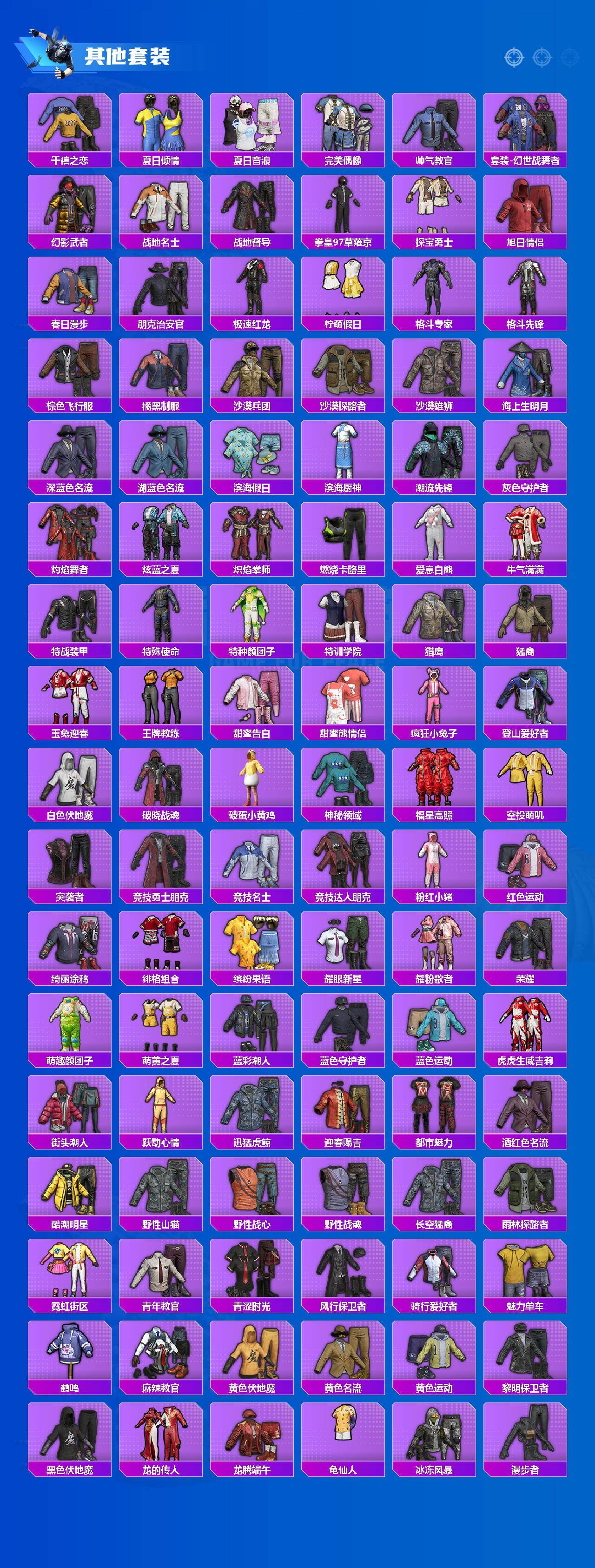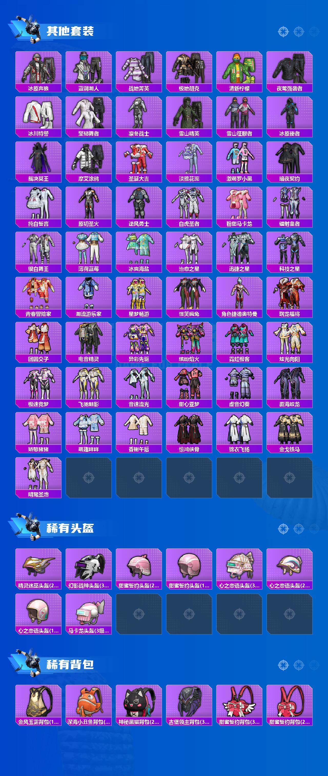 套装-胖达圆圆,独舞天鹅套装,套装-蝶舞迷情,套装-潮汐统领,套装-王牌四分卫,套装-海盐物语,套装-炫光之旅,套装-爱崽白熊